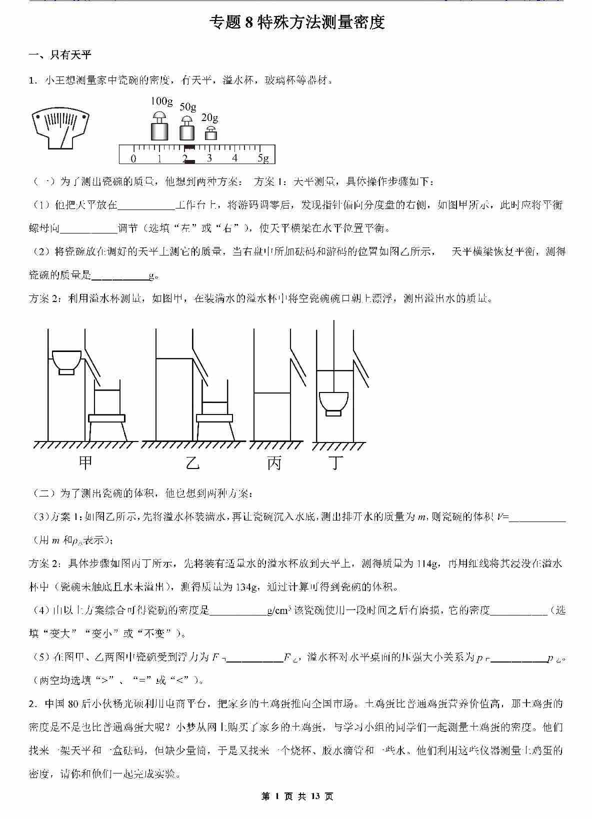 【八上物理】专题8 特殊方法测量密度
