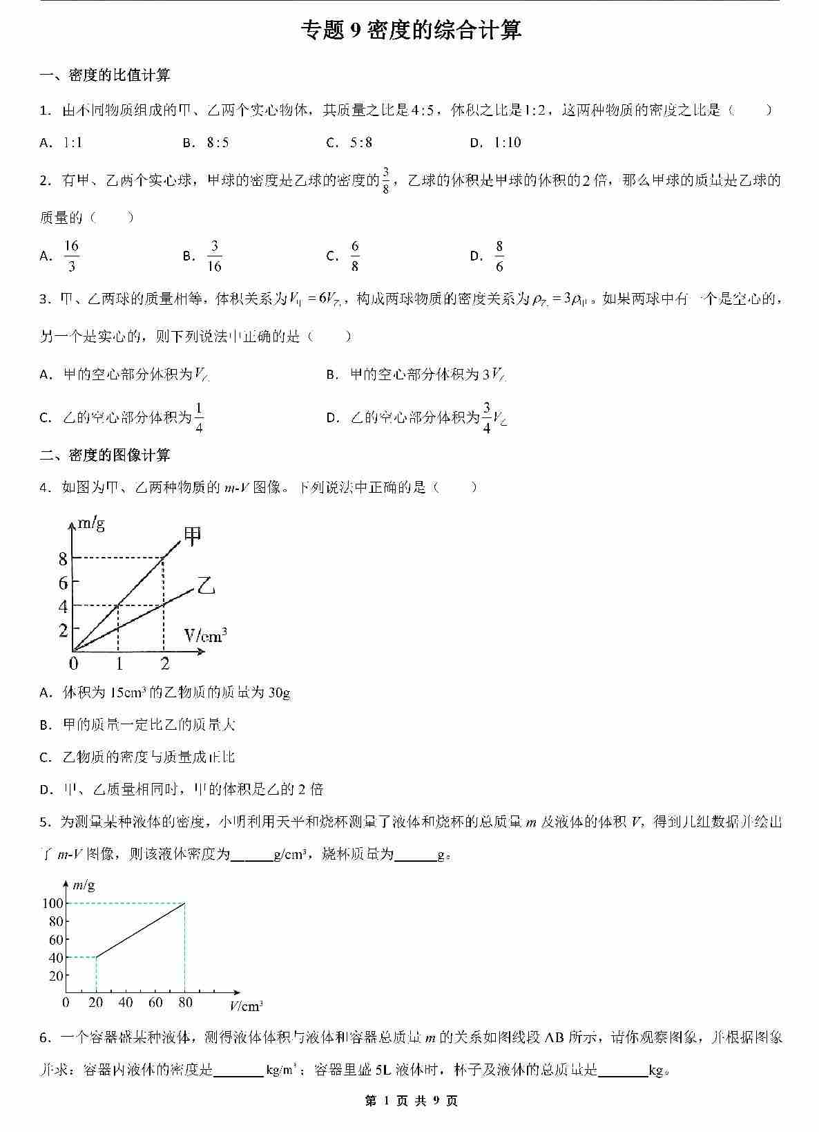 【八上物理】专题9 密度的综合计算