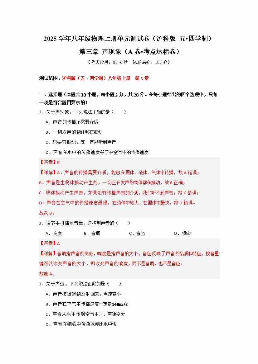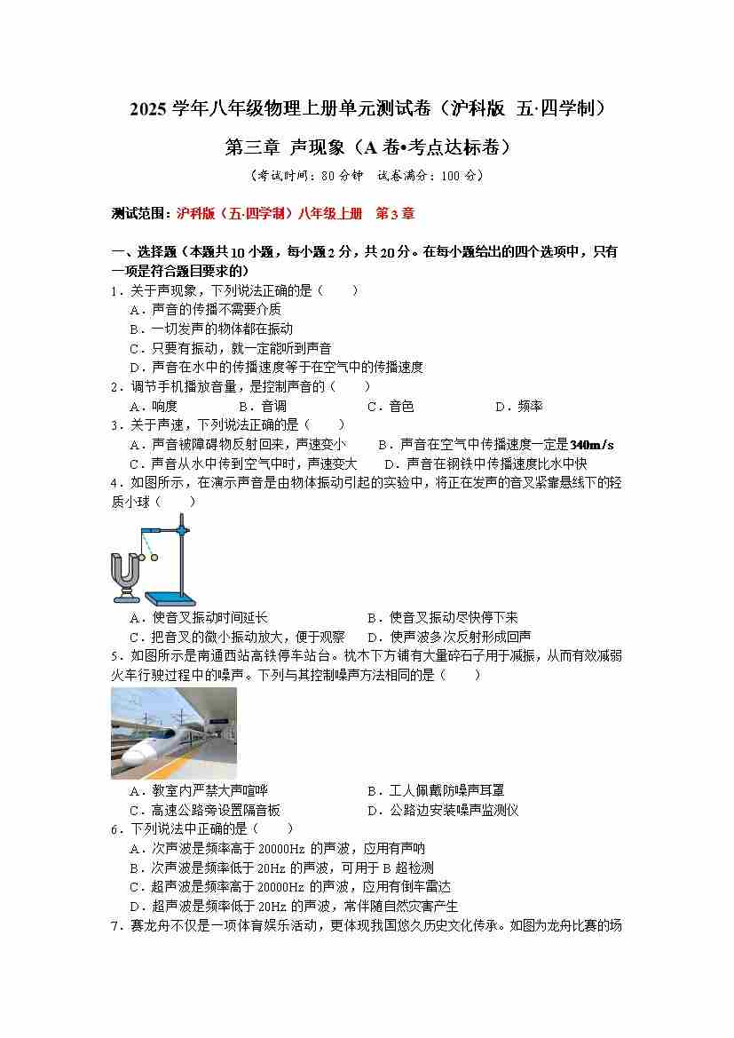 第三章 声现象【A卷 达标卷】(原卷版)