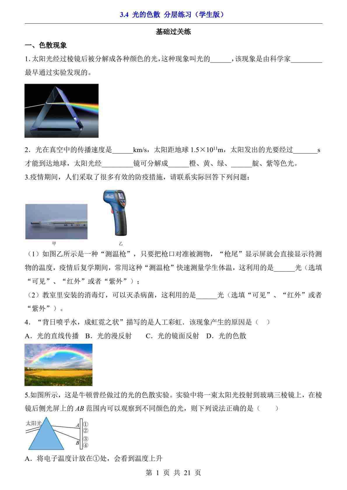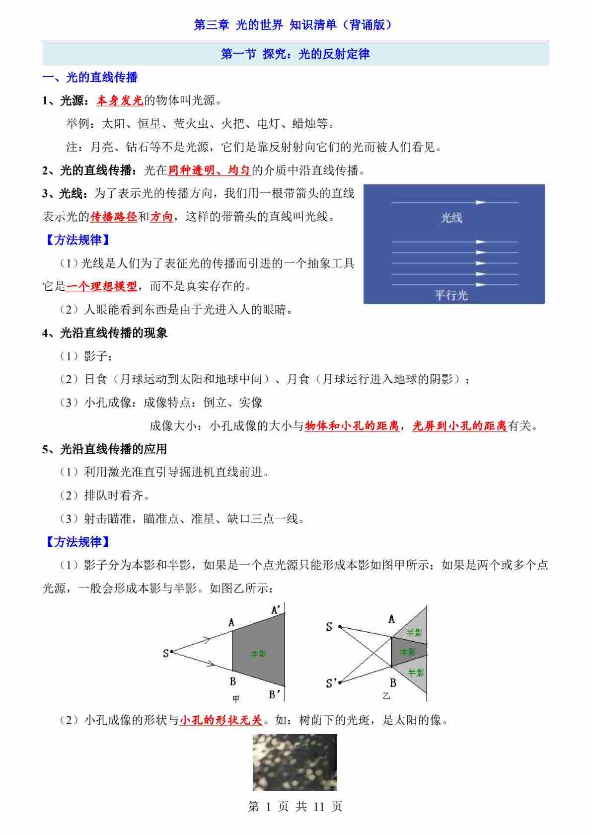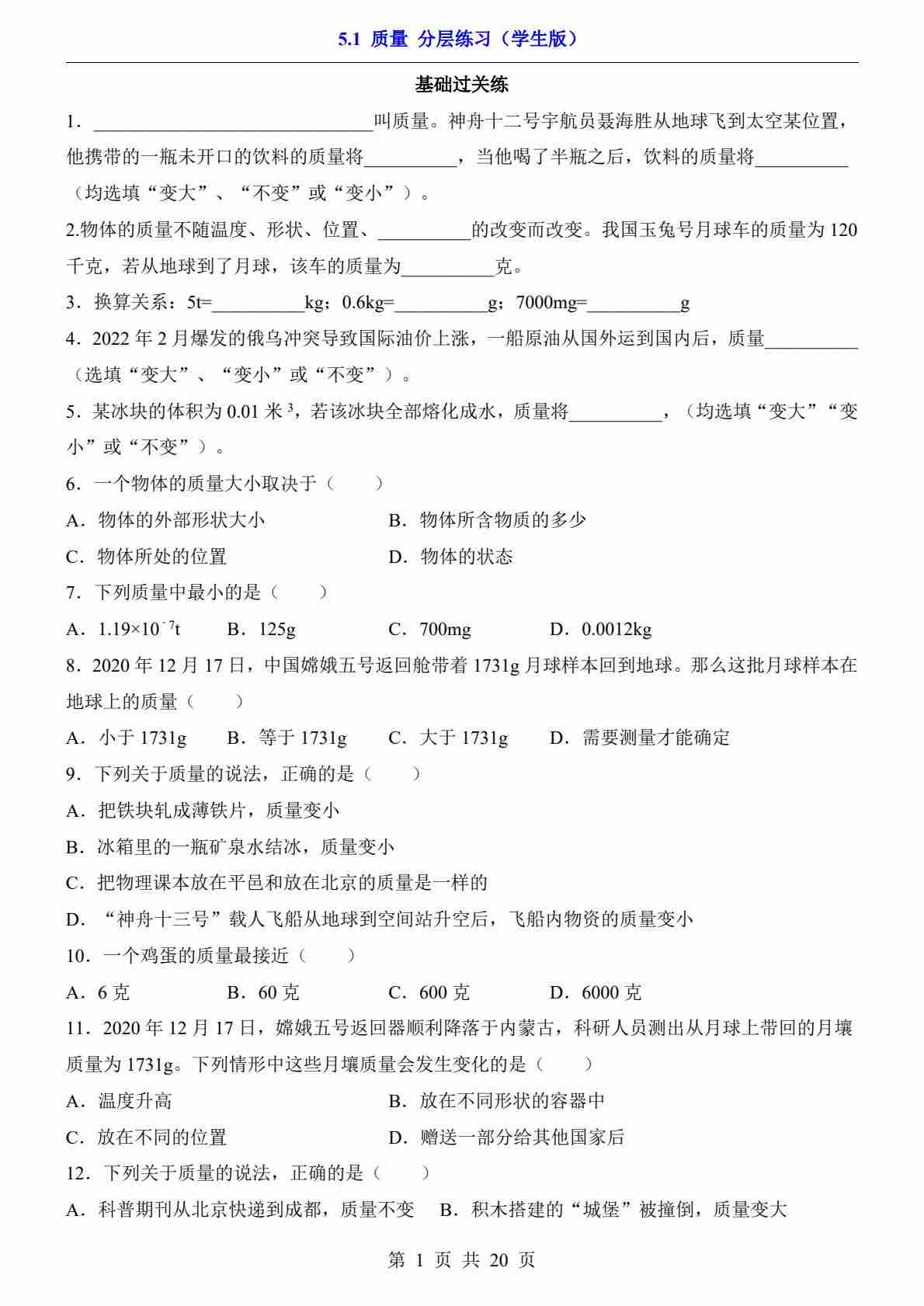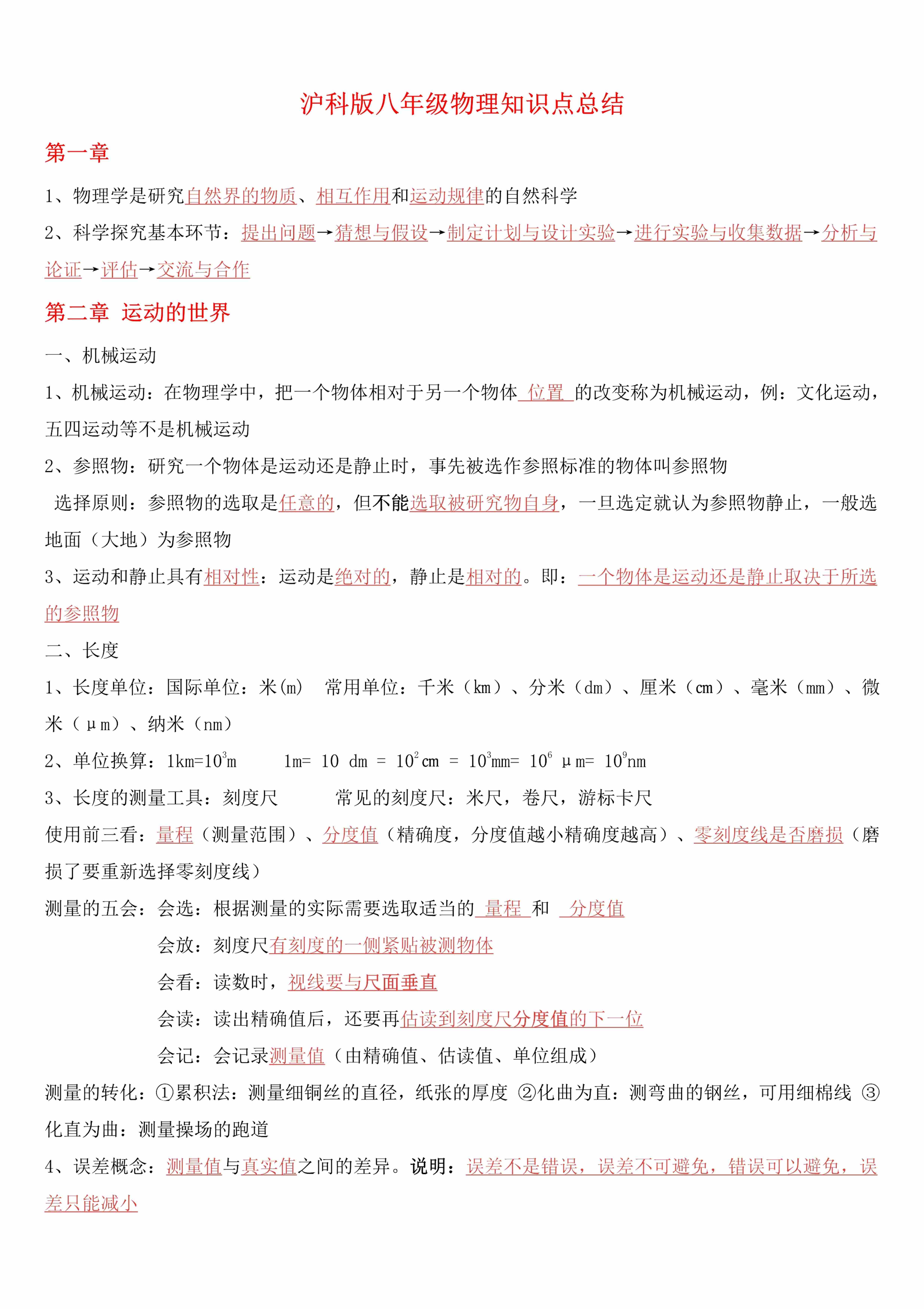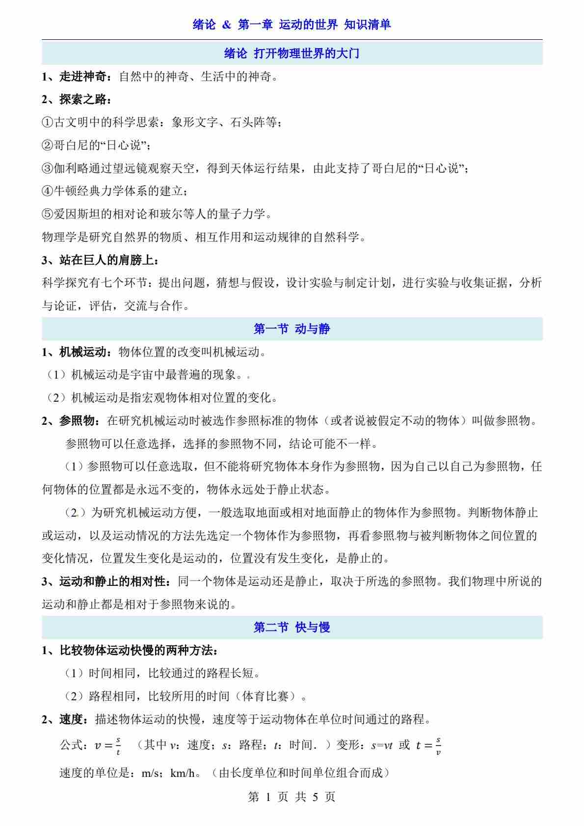 0 绪论 第1章 运动的世界(知识清单)---沪科版