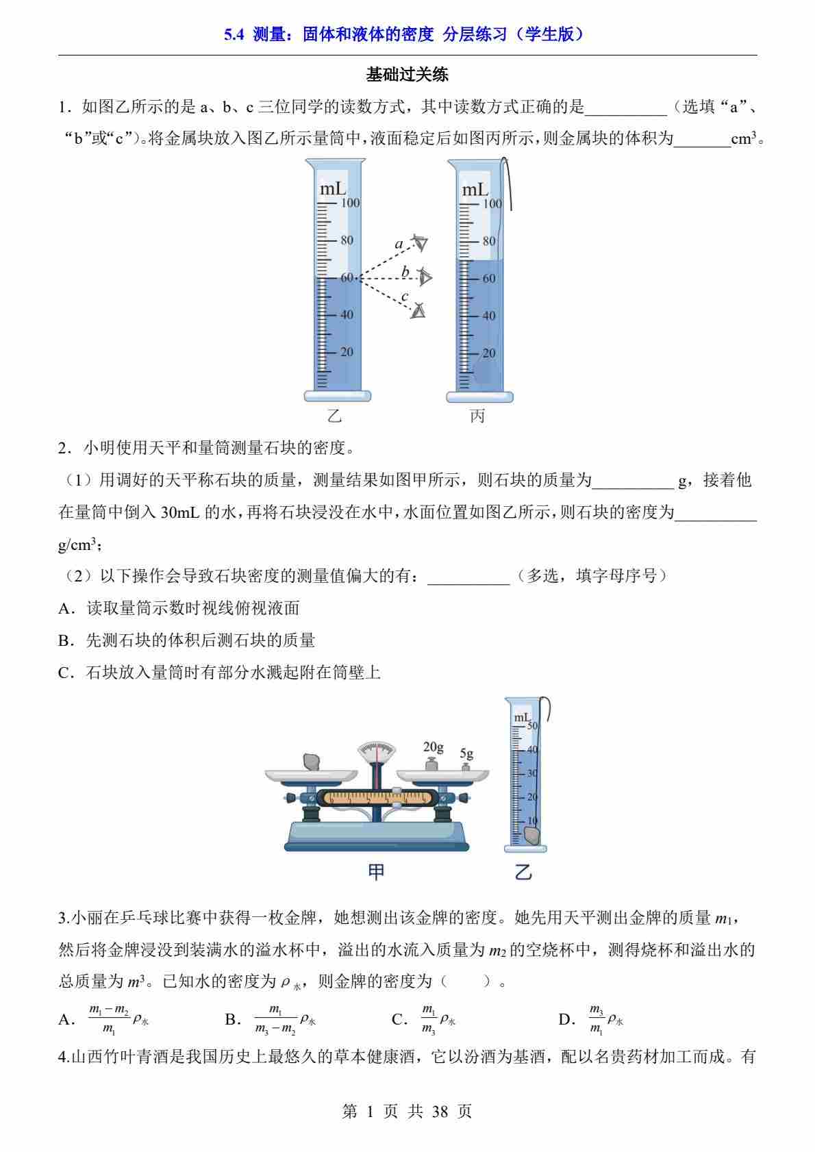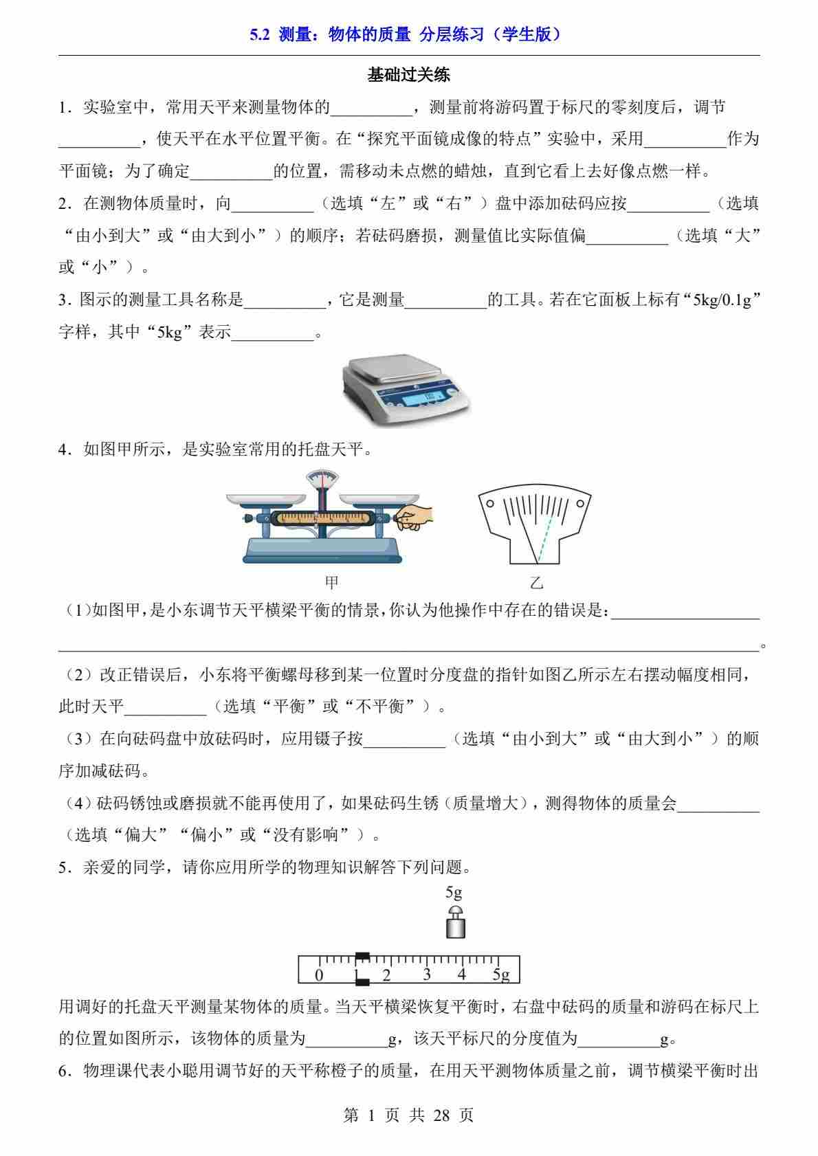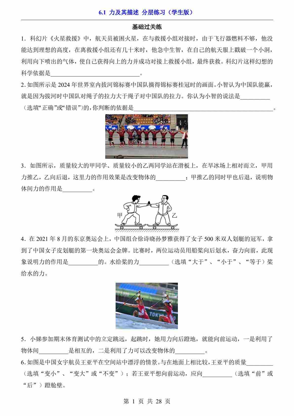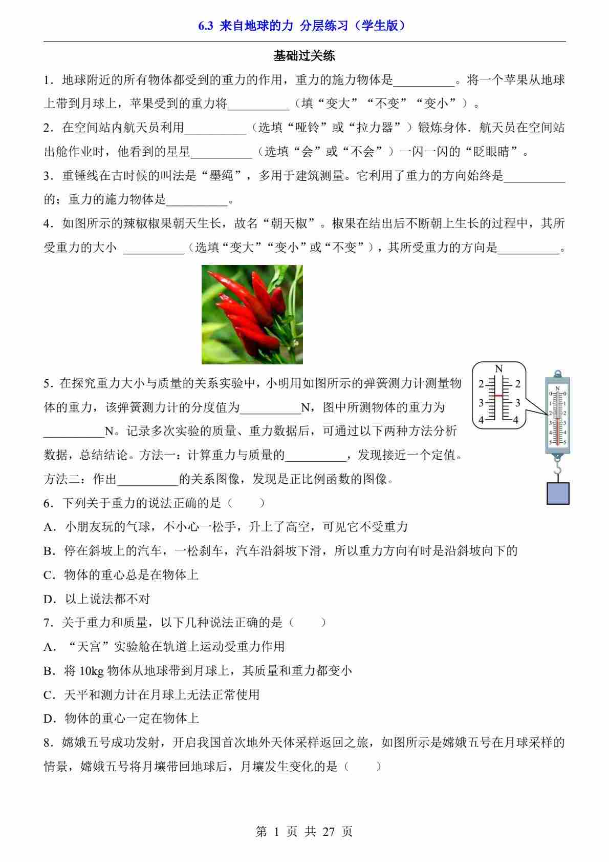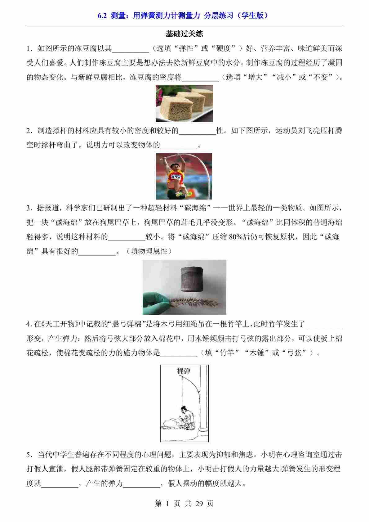 6.2 测量:用弹簧测力计测量力(分层练习)