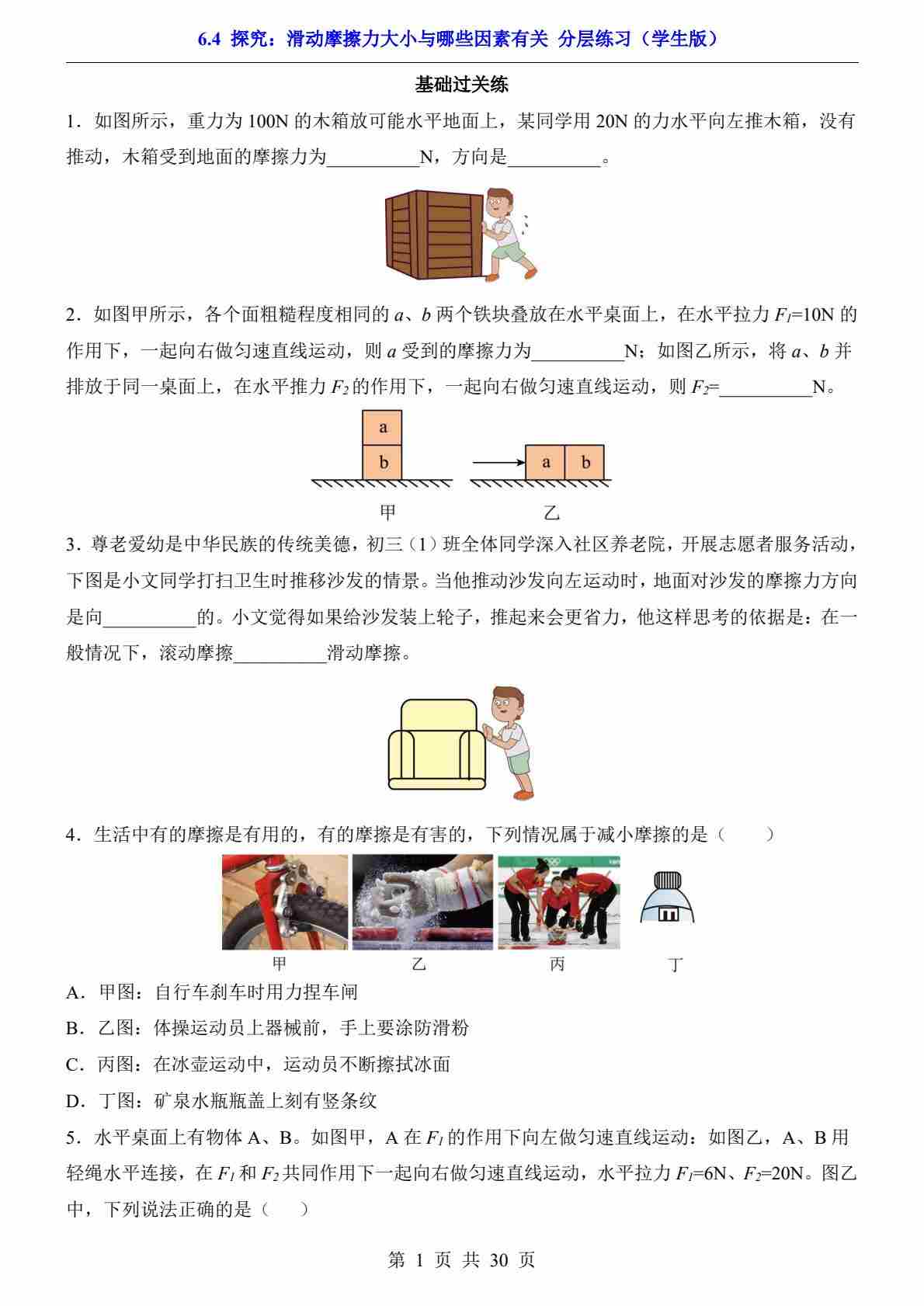 6.4 探究:滑动摩擦力大小与哪些因素有关(分层练习)