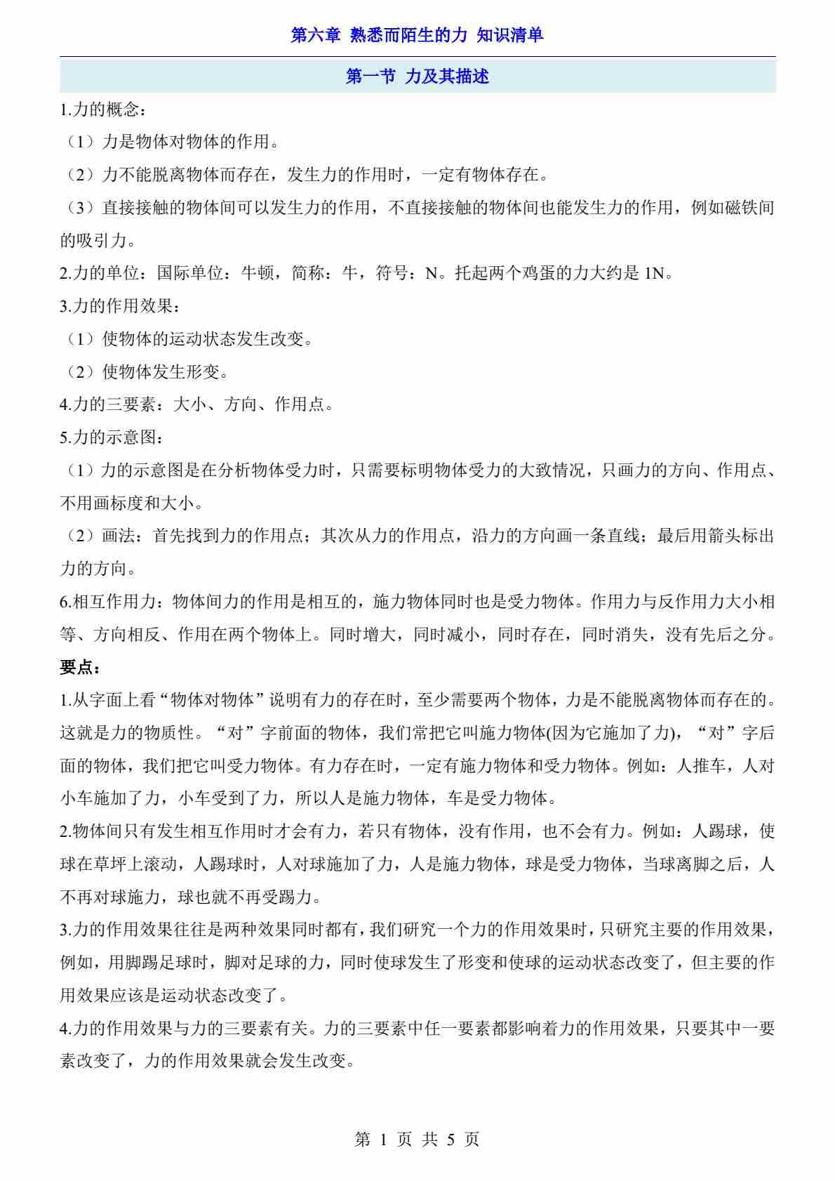 第6章 熟悉而陌生的力(知识清单)---沪科版