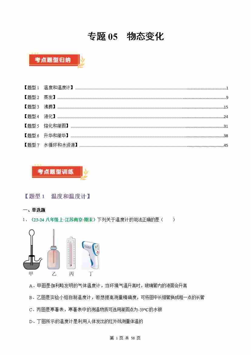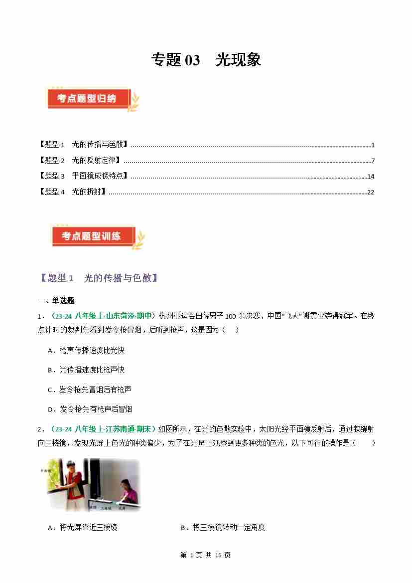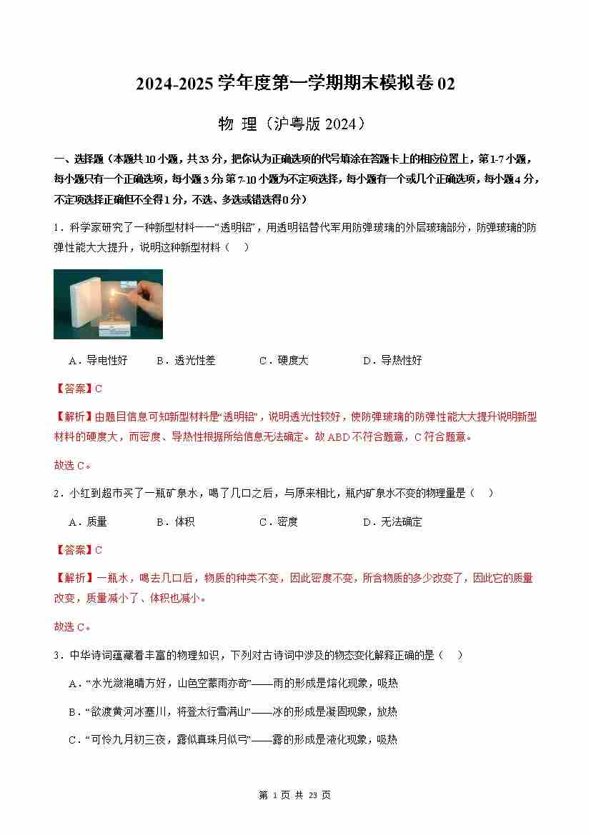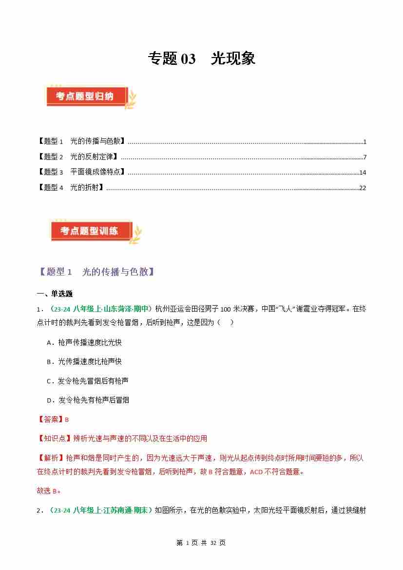 八年级上学期物理第一次月考卷(全解全析)(沪粤版2024)