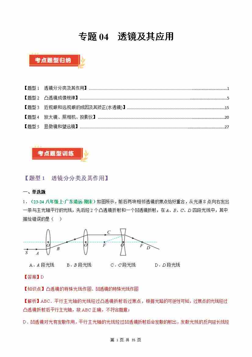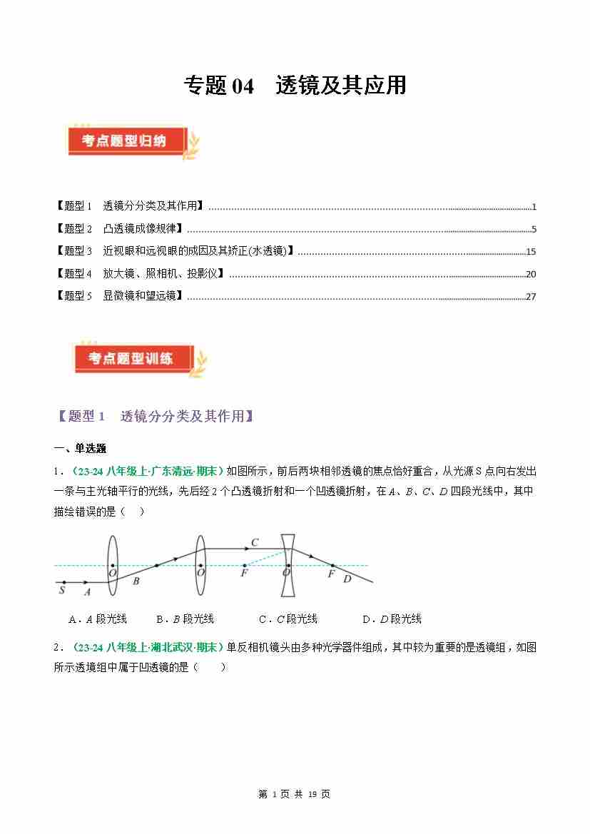 专题04 透镜及其应用【考题猜想】(原卷版)