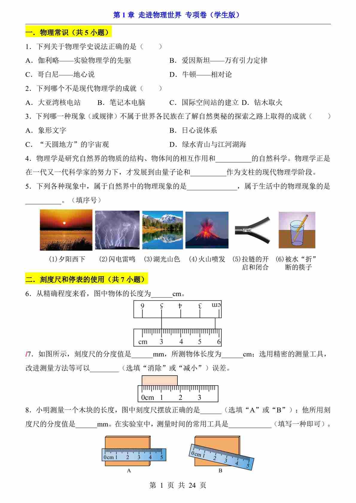 第5章质量与密度【速记清单】(原卷版)-【新教材】2024-2025学年八年级物理上册单元速记·巧练(沪粤版2024)