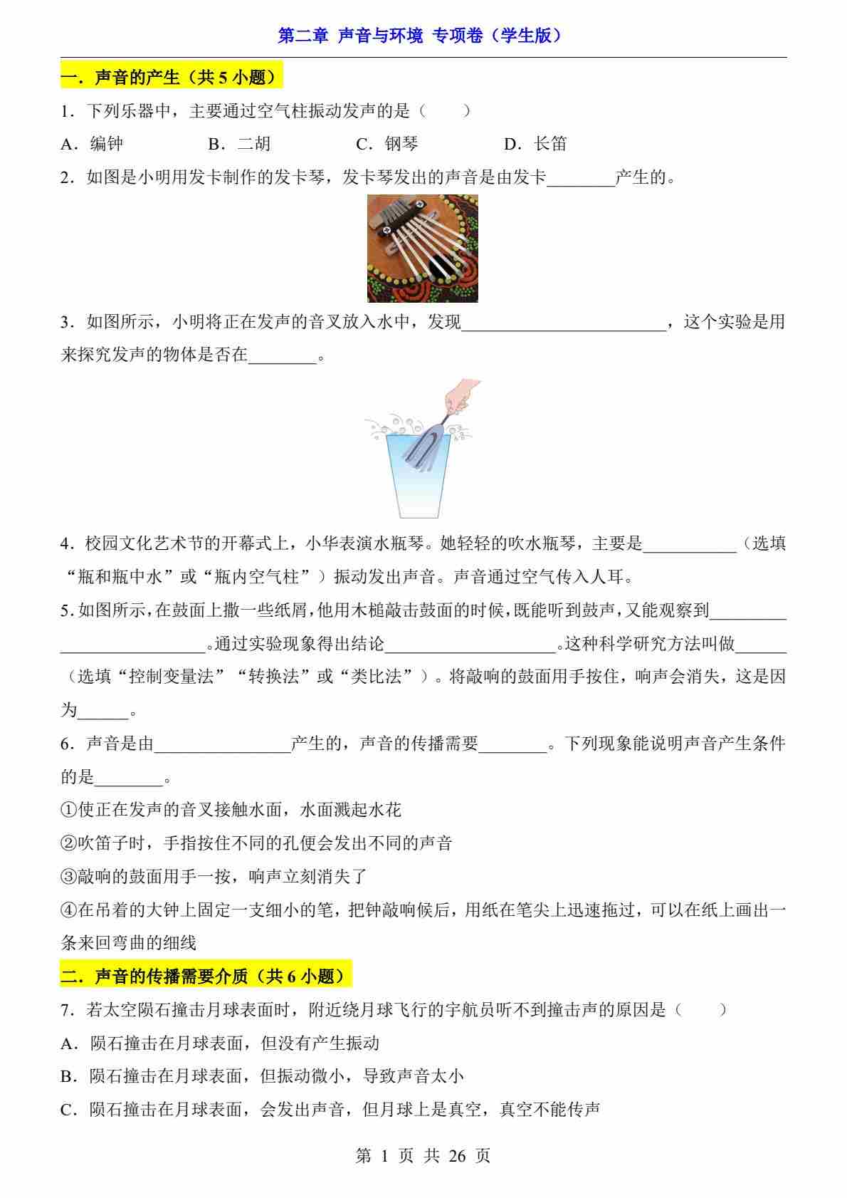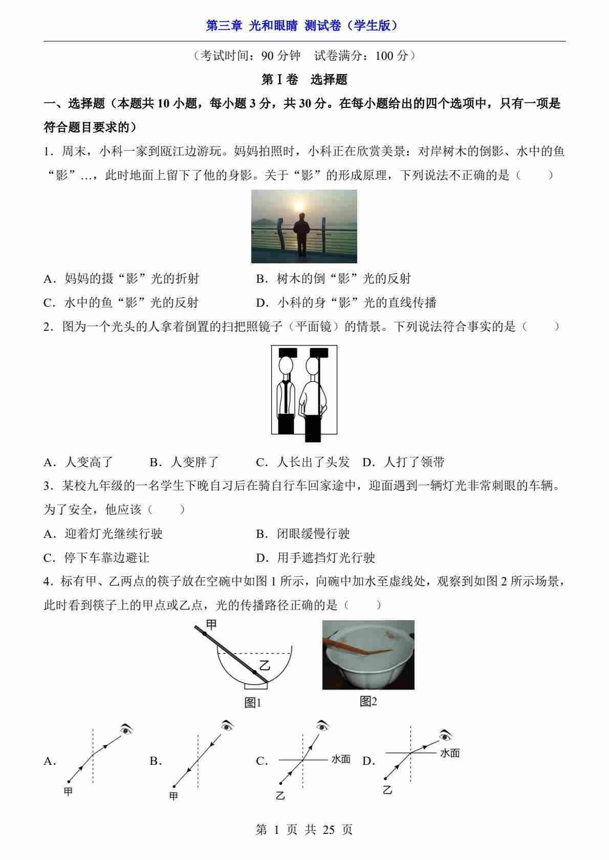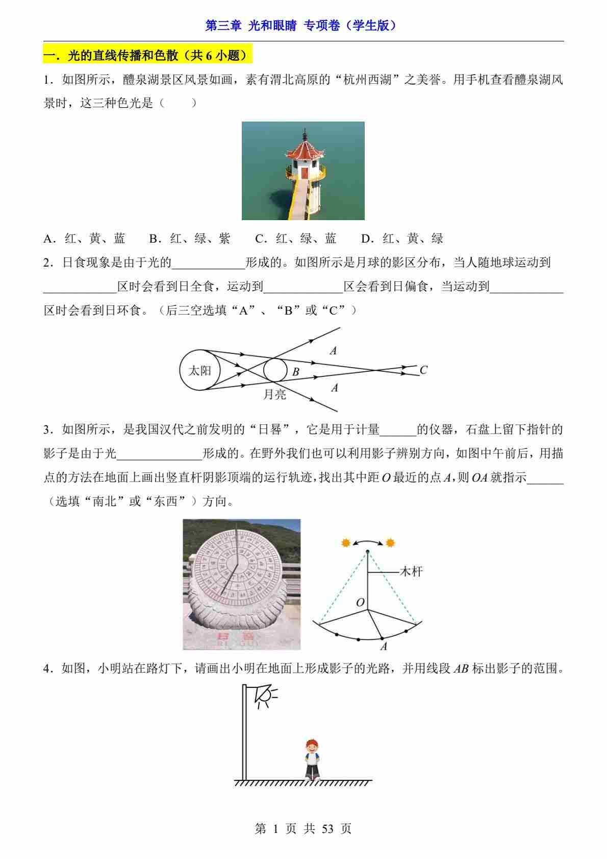 八年级物理第三次月考卷(考试版A4)【测试范围:沪粤版2024,第一章~第四章】