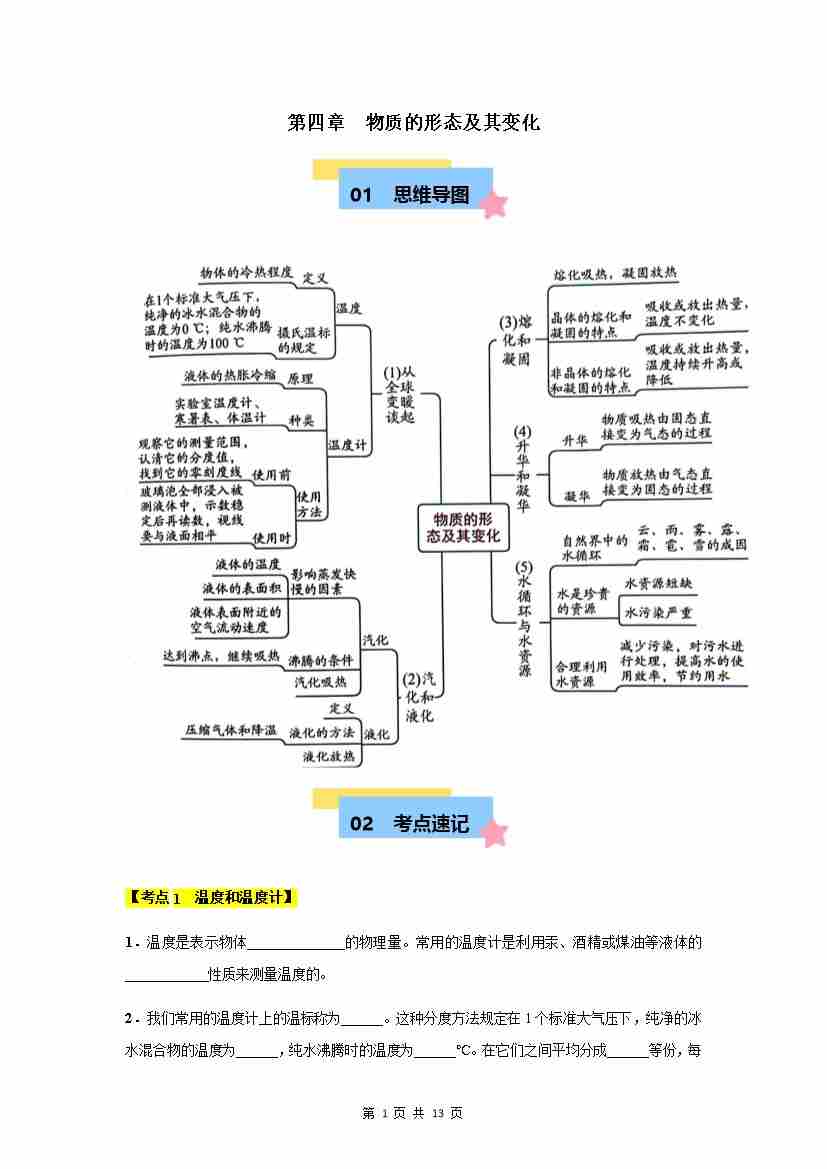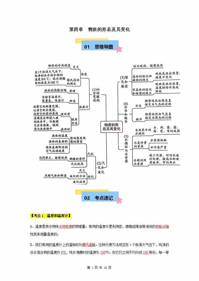 第4章 物质的形态及其变化【速记清单】(解析版)