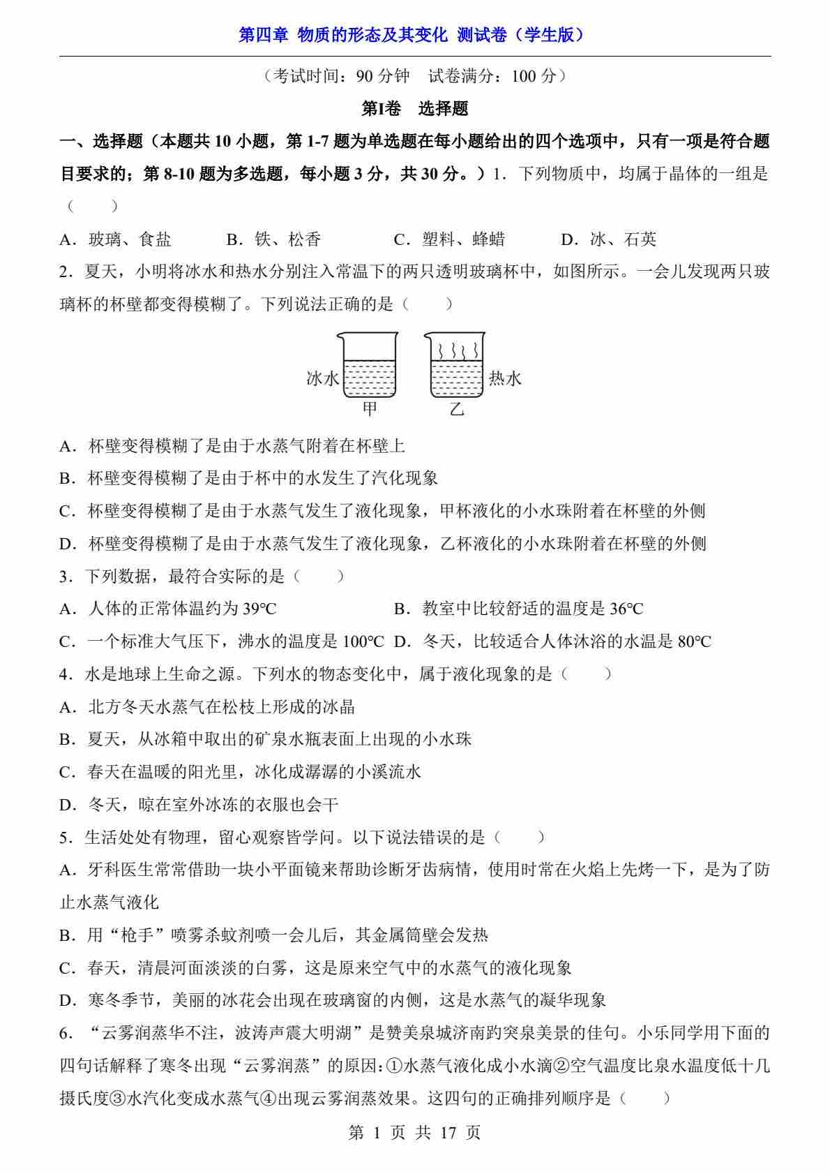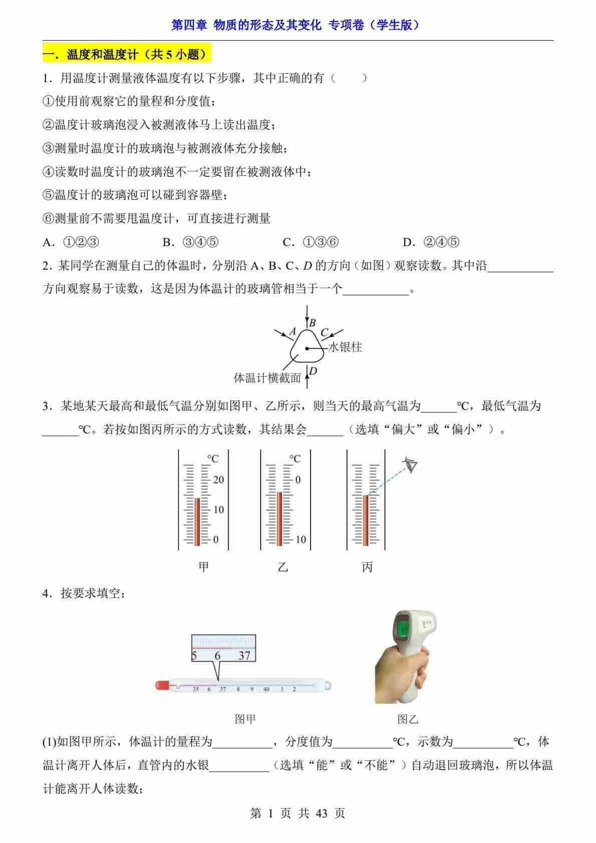 第4章 物质的形态及其变化【速记清单】(原卷版)