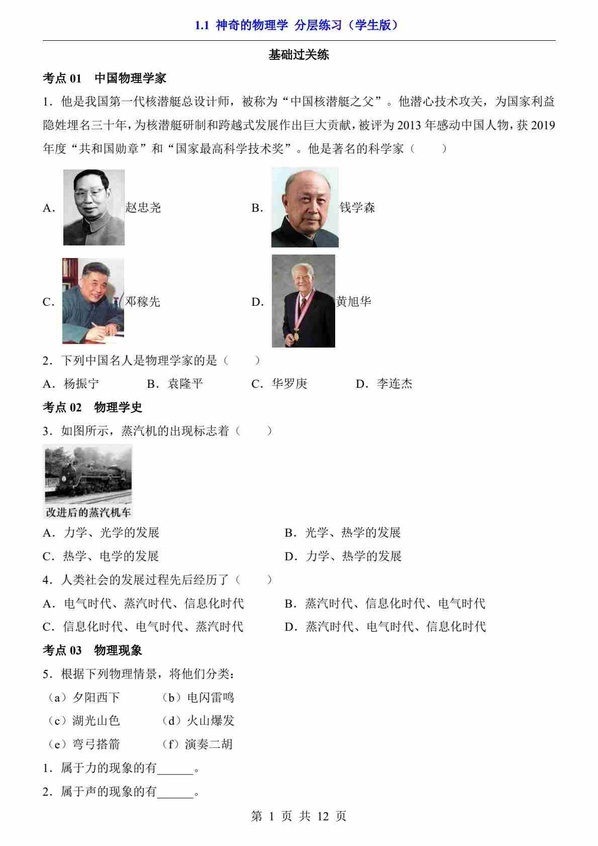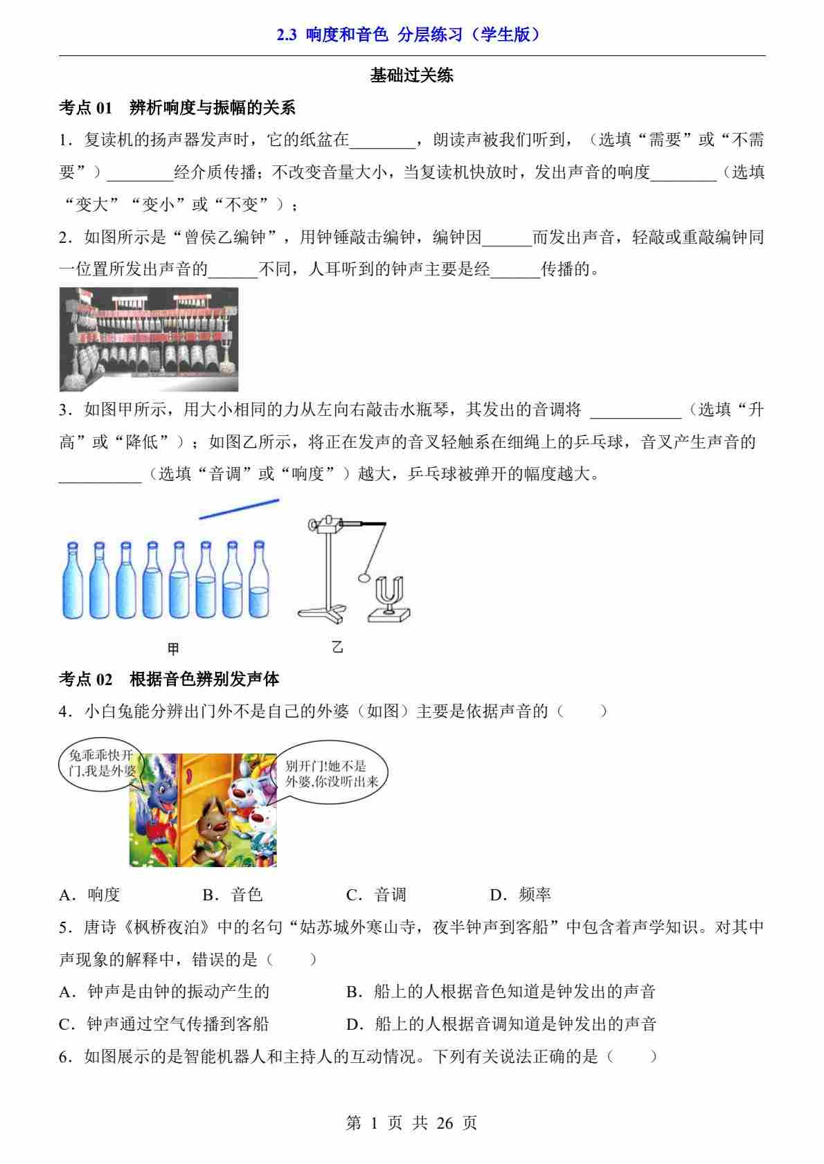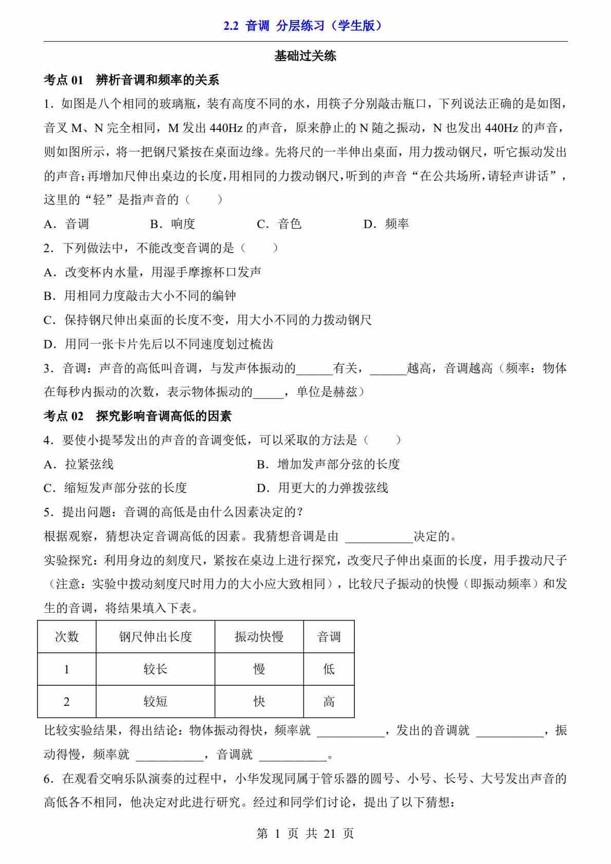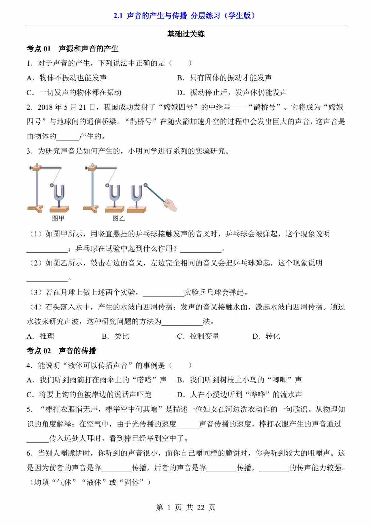 2.1 声音的产生与传播(分层练习)---沪粤版