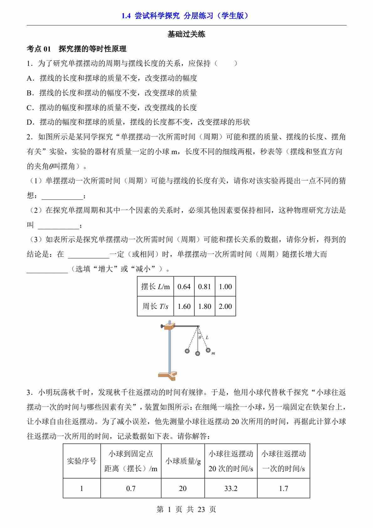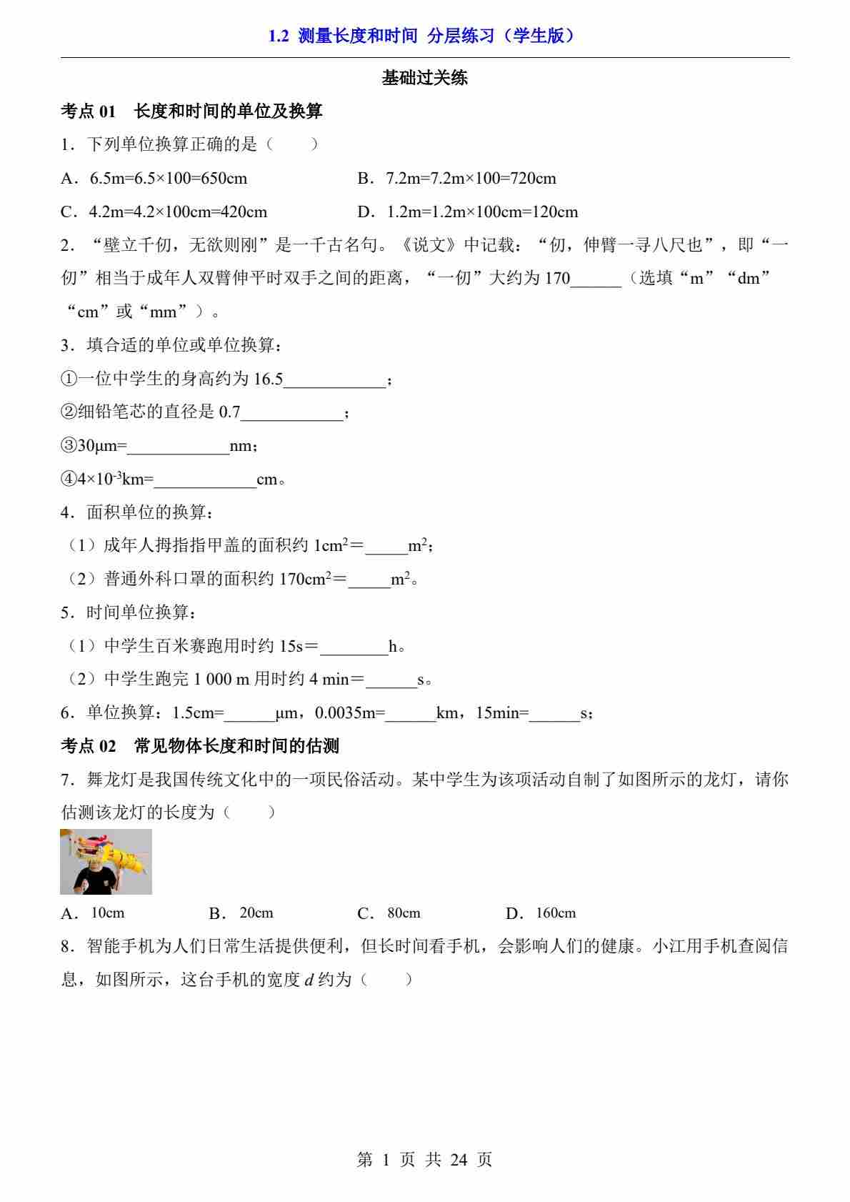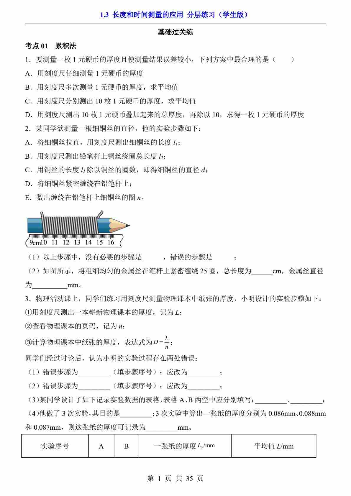 1.3 长度和时间测量的应用(分层练习)---沪粤版