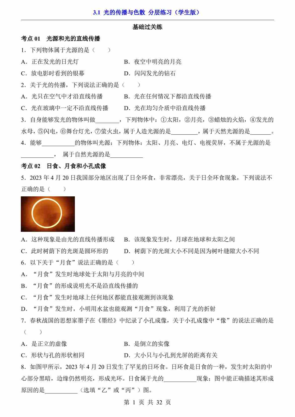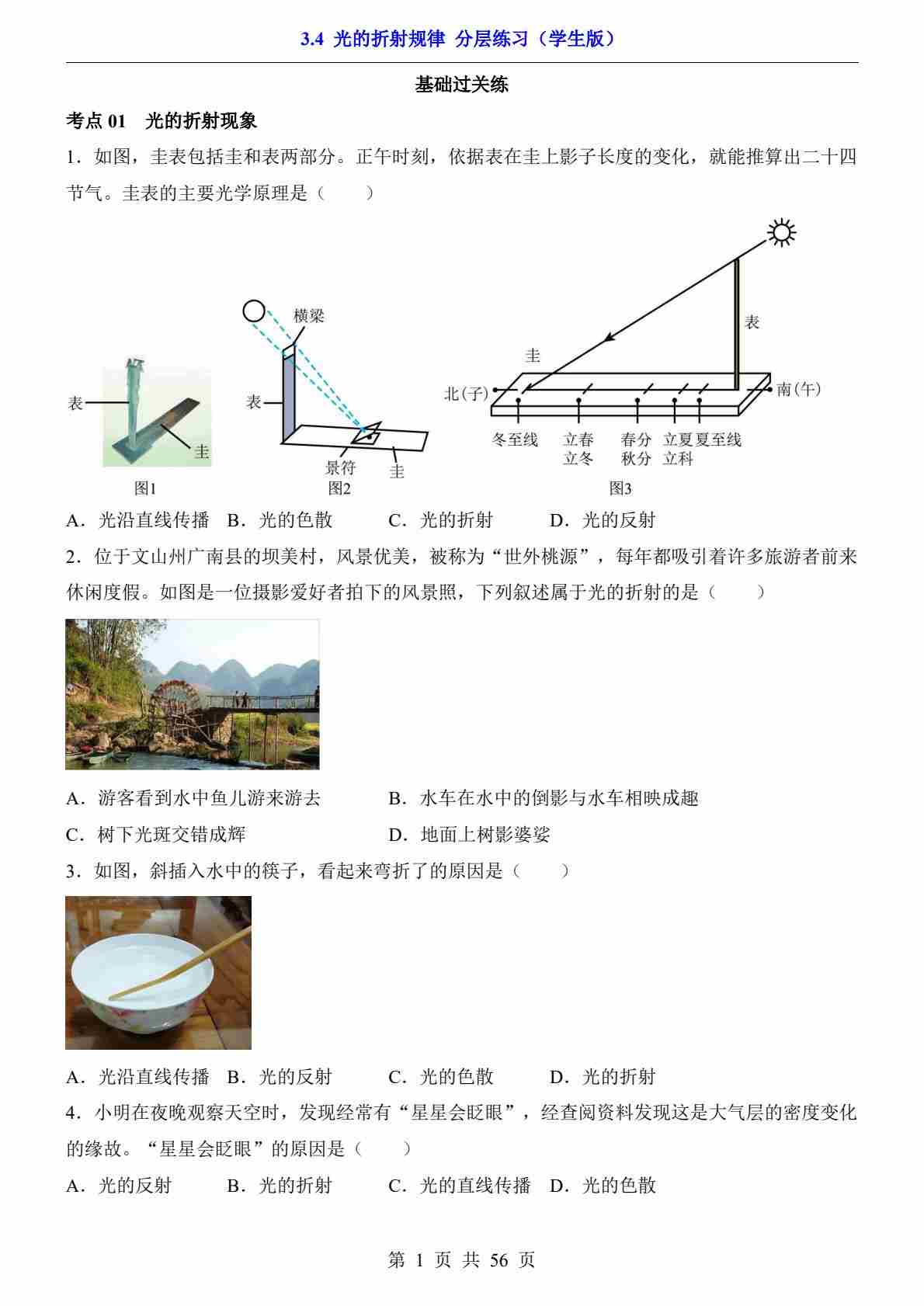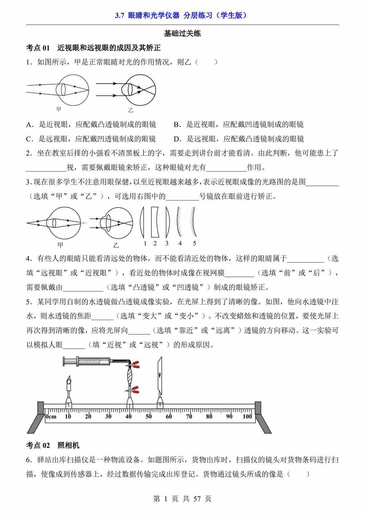 3.7 眼睛和光学仪器(分层练习)---沪粤版