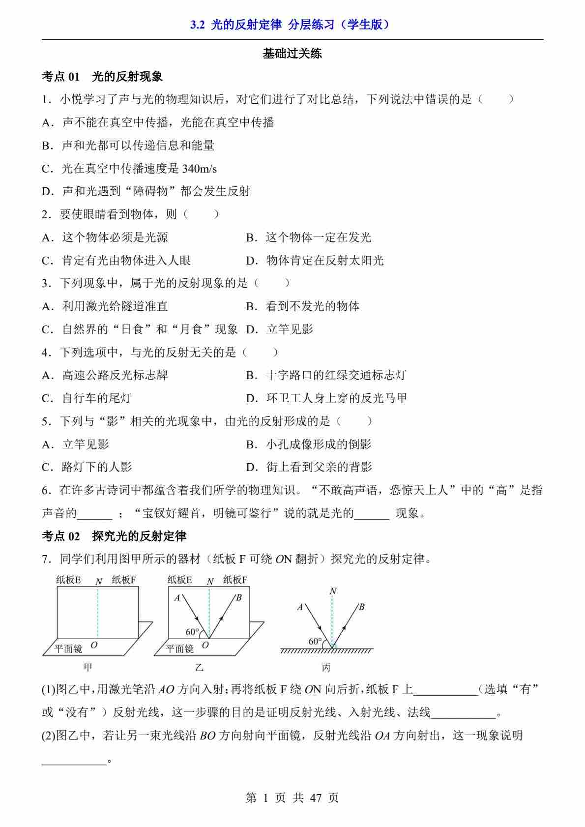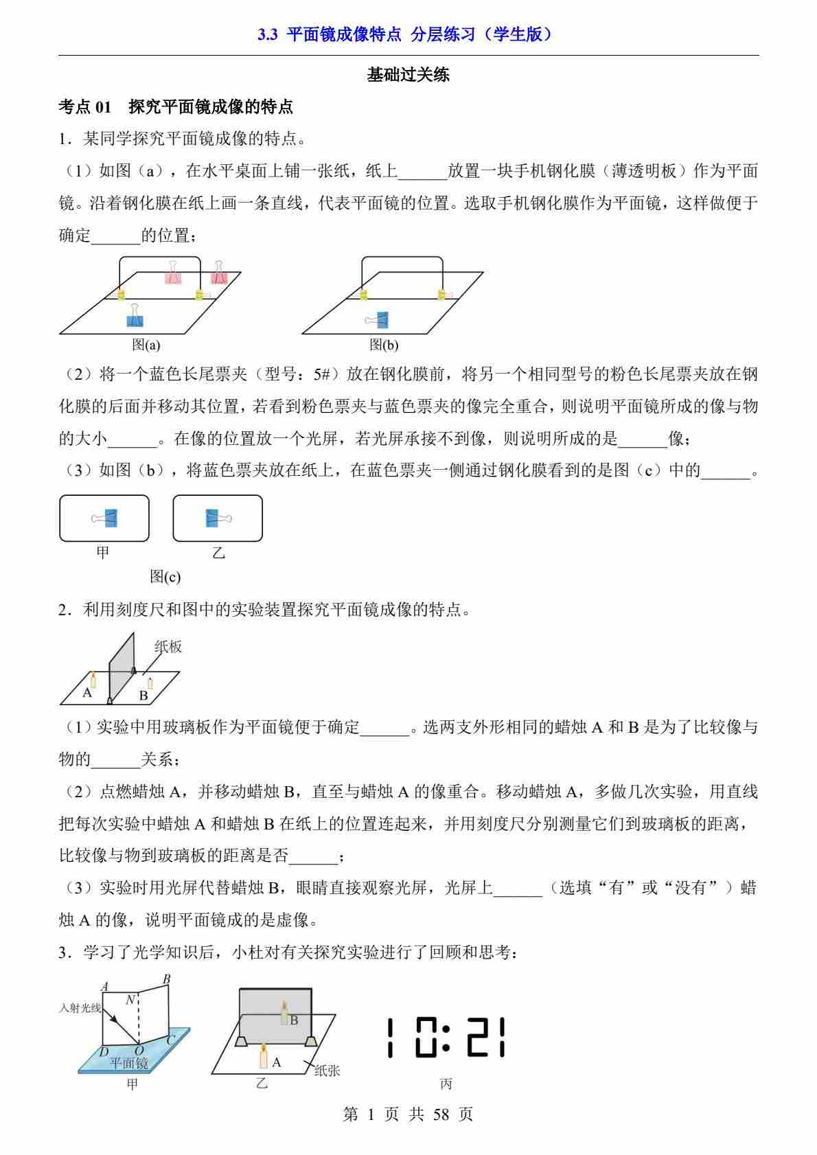 3.3 平面镜成像特点(分层练习)---沪粤版