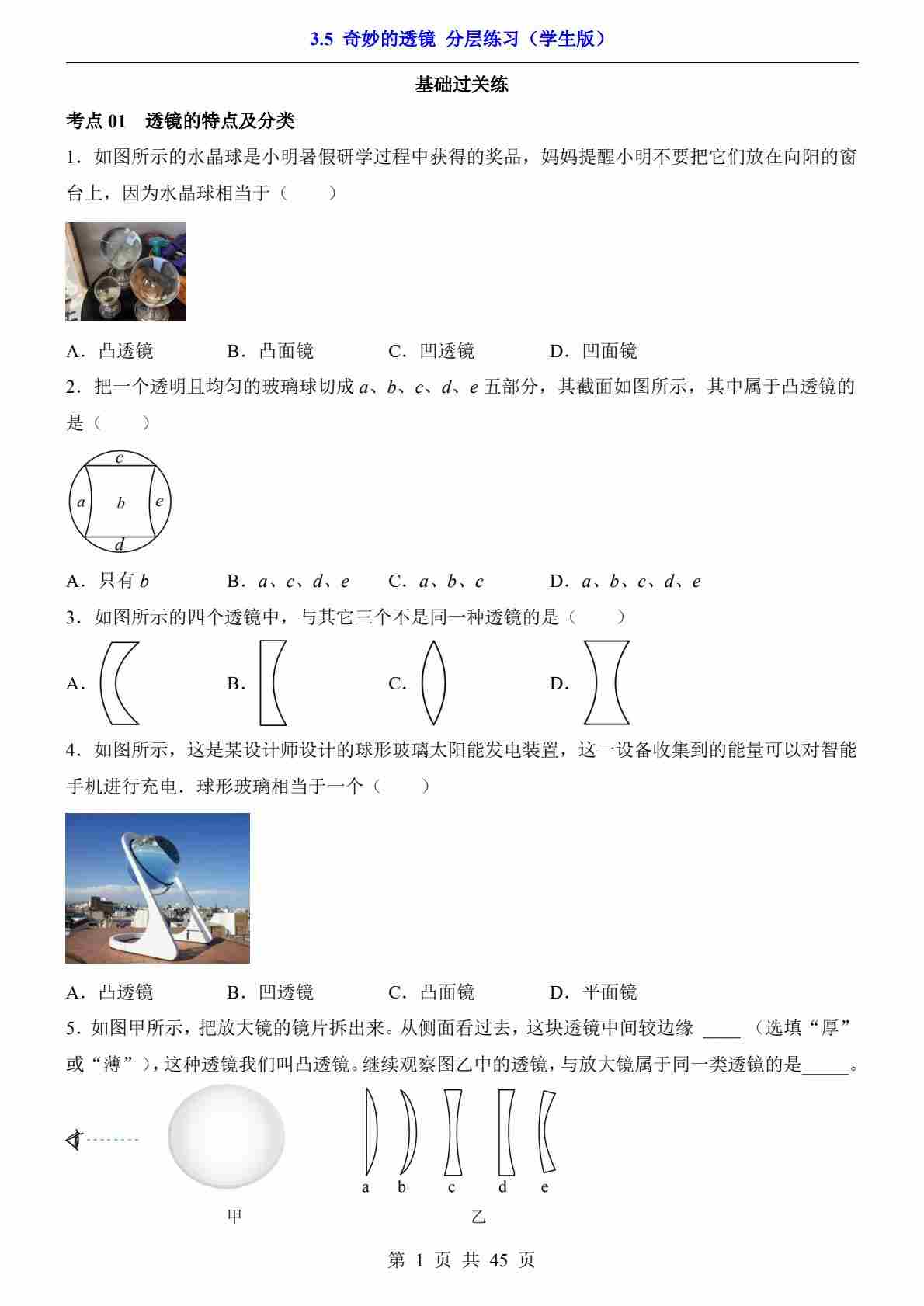 3.5 奇妙的透镜(分层练习)---沪粤版
