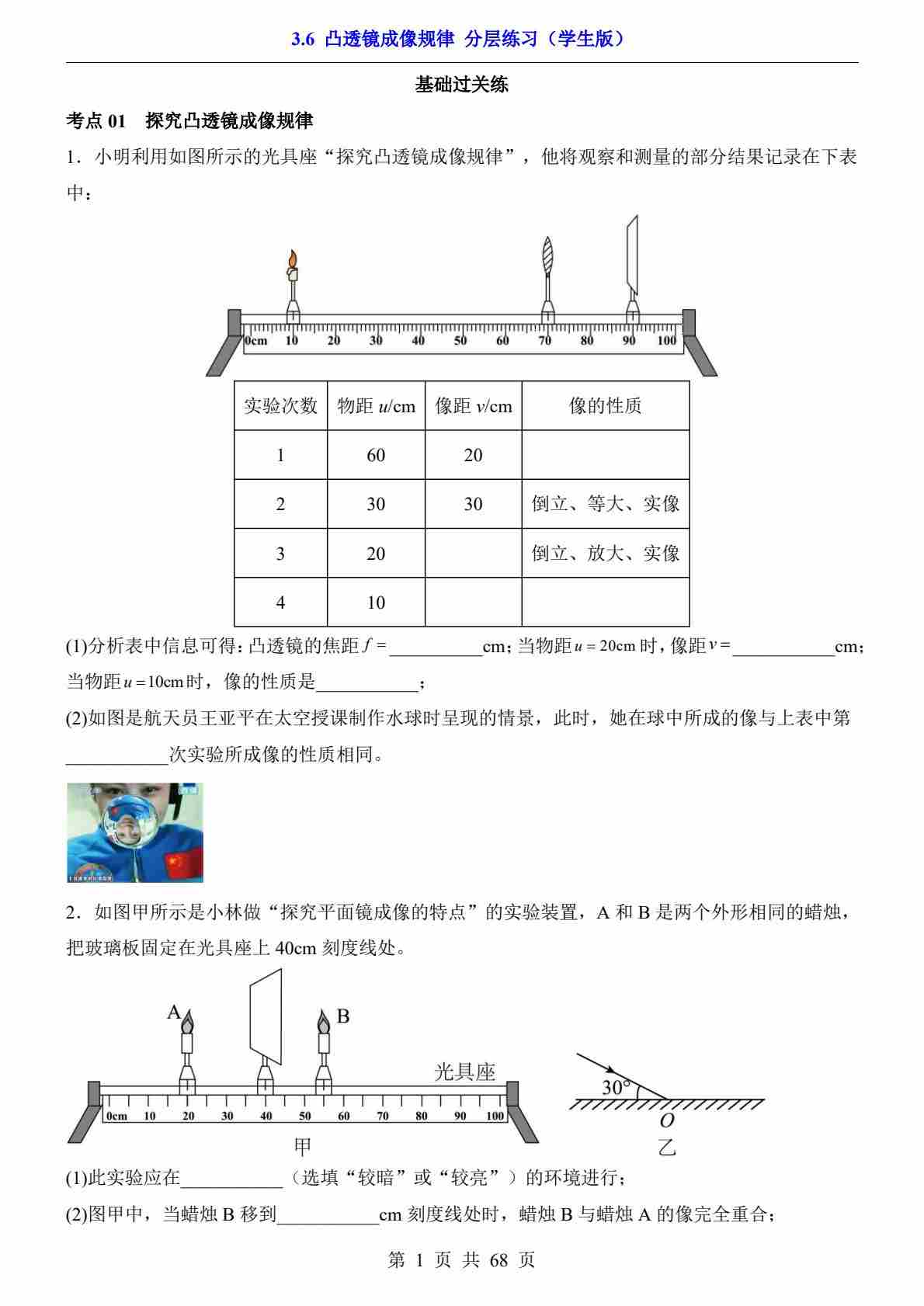 3.6 凸透镜成像规律(分层练习)---沪粤版