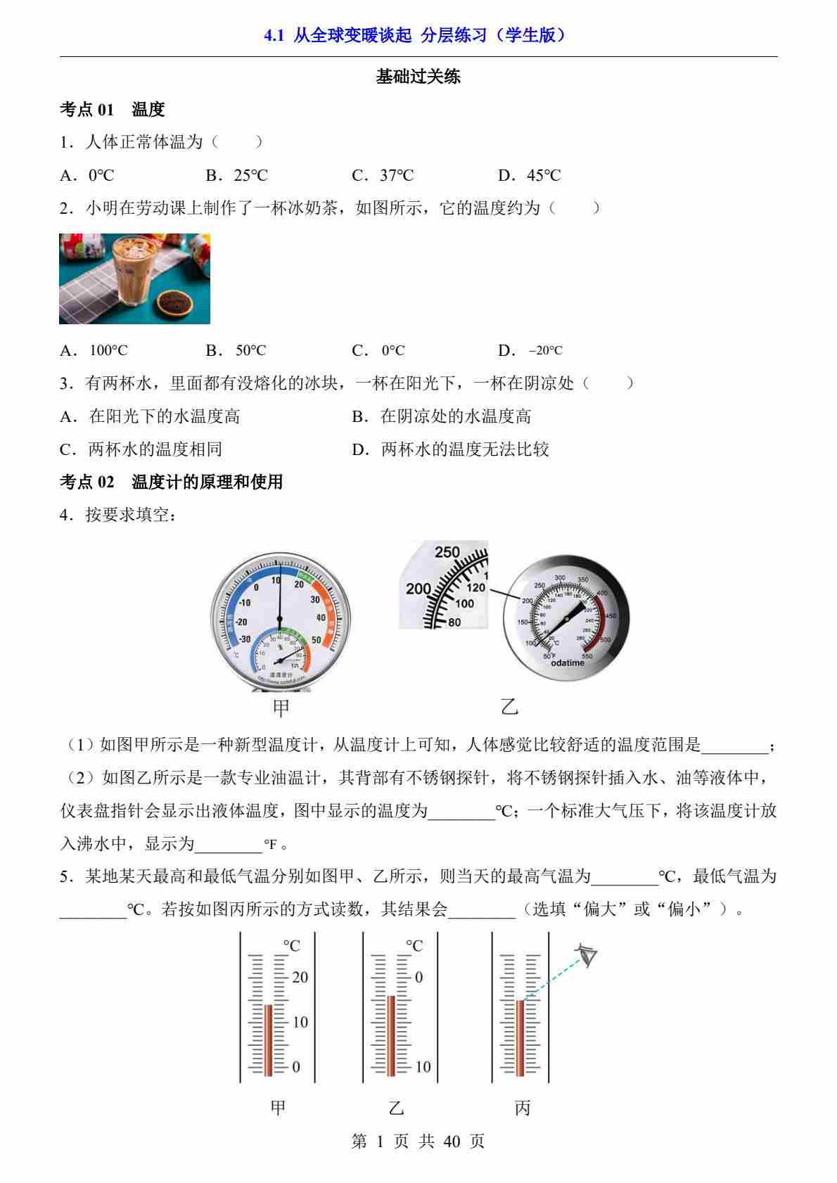 4.1 从全球变暖谈起(分层练习)---沪粤版