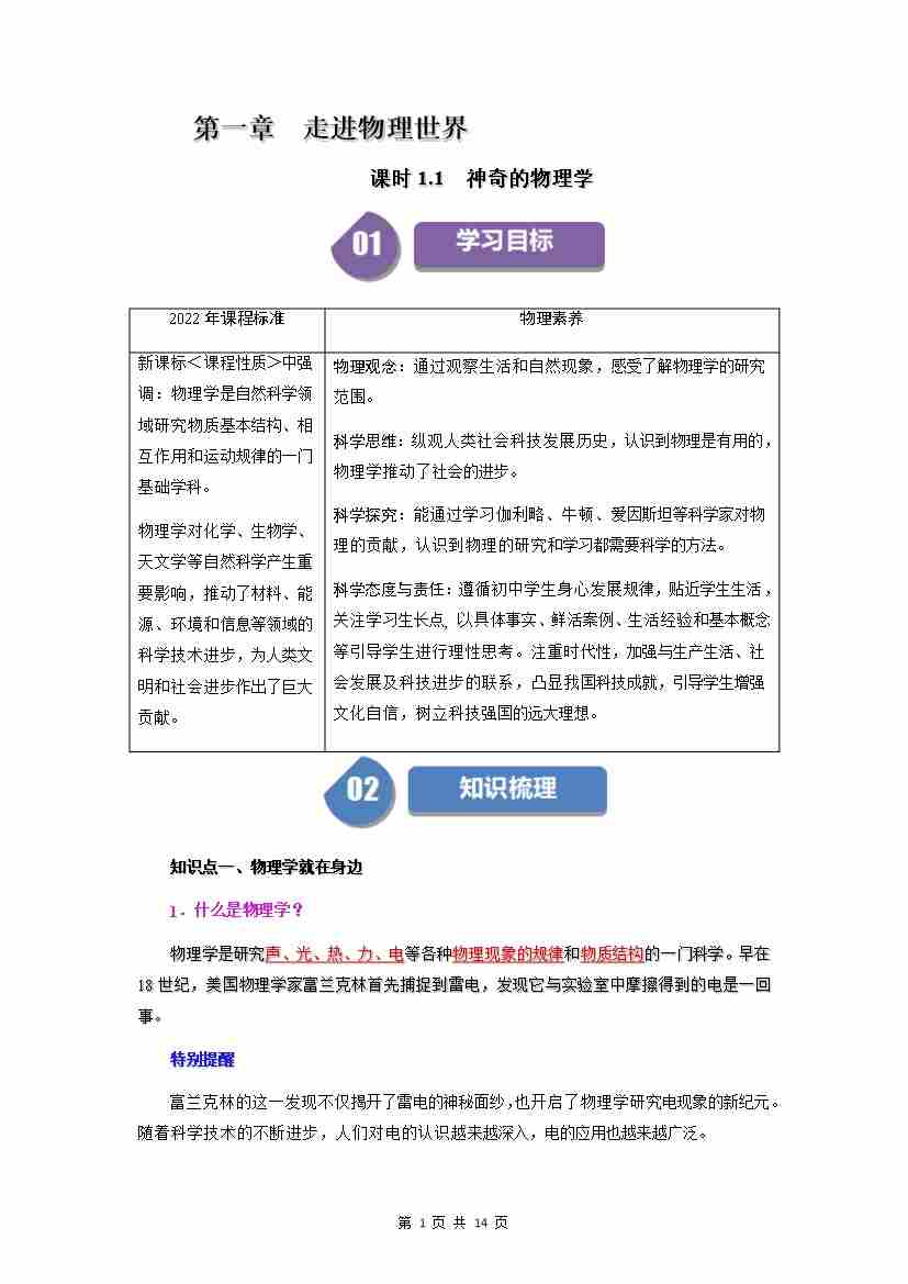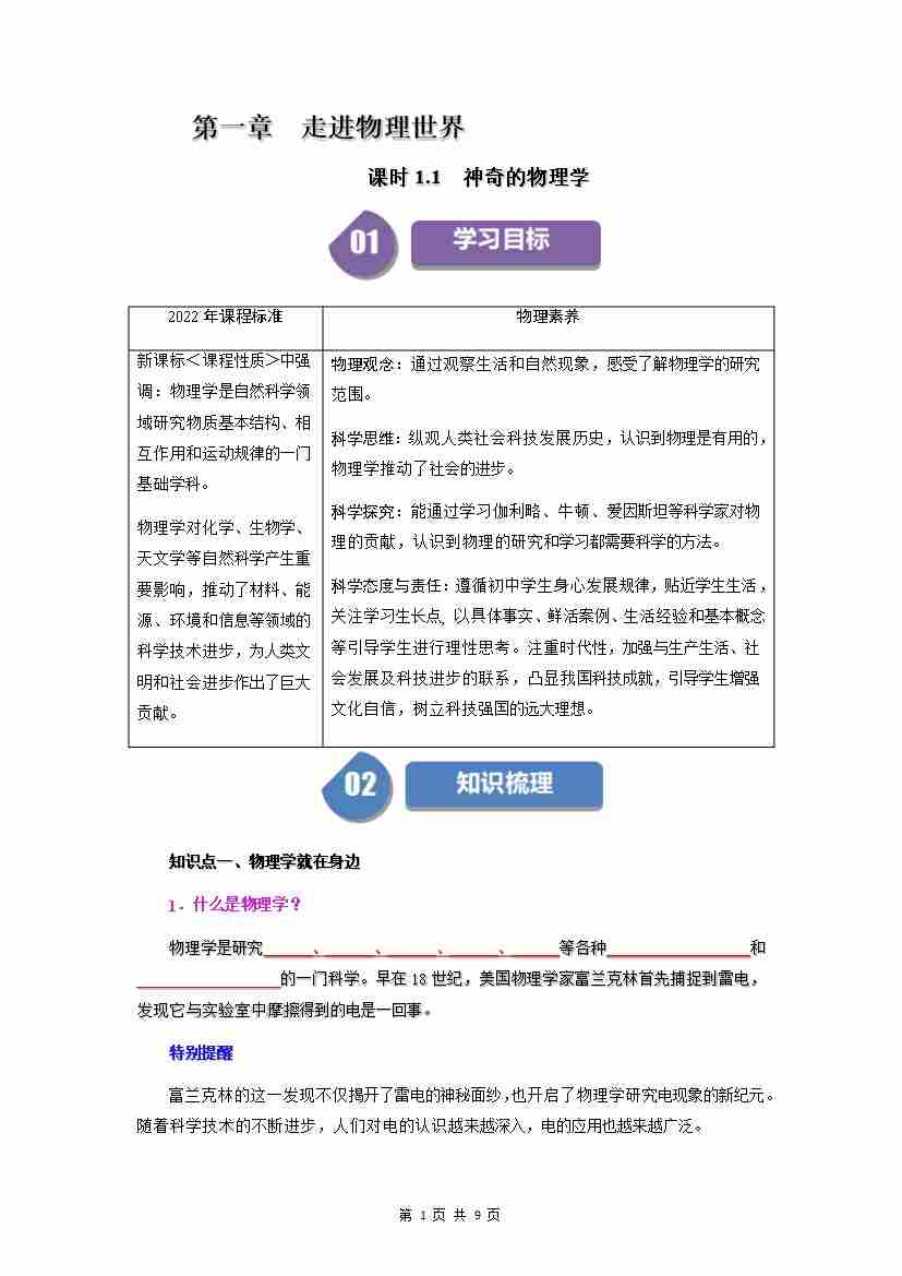 1.1 神奇的物理学(解析版)
