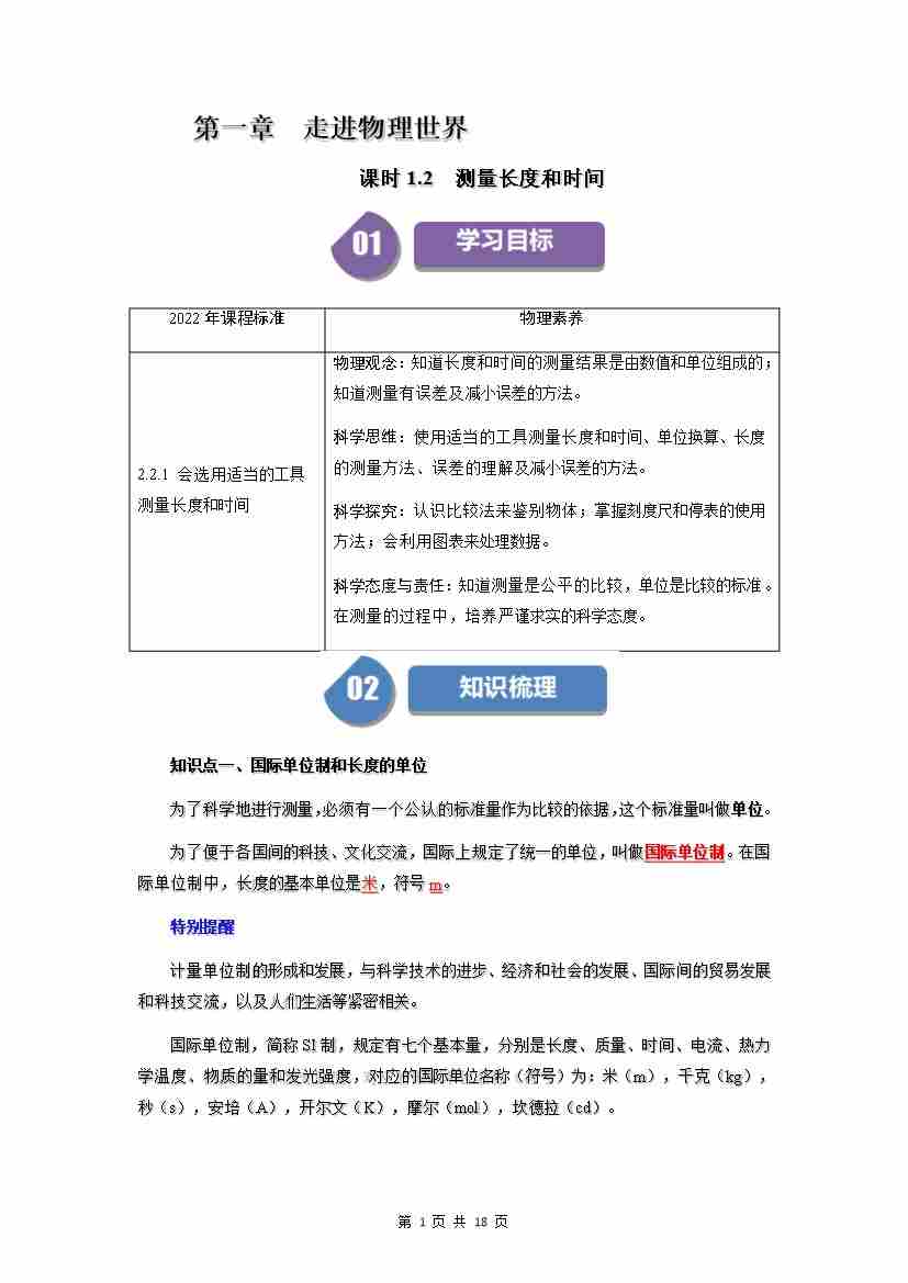 1.2 测量长度和时间(解析版)