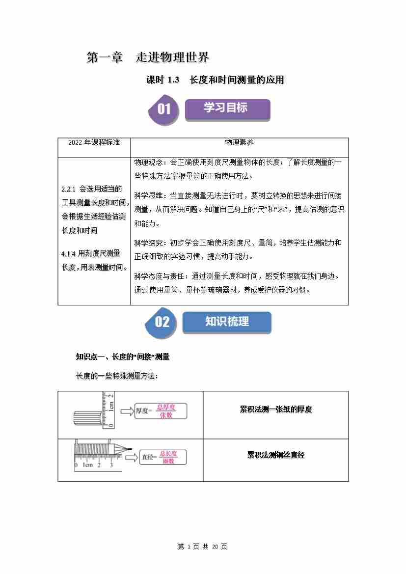 1.3 长度和时间测量的应用(原卷版)