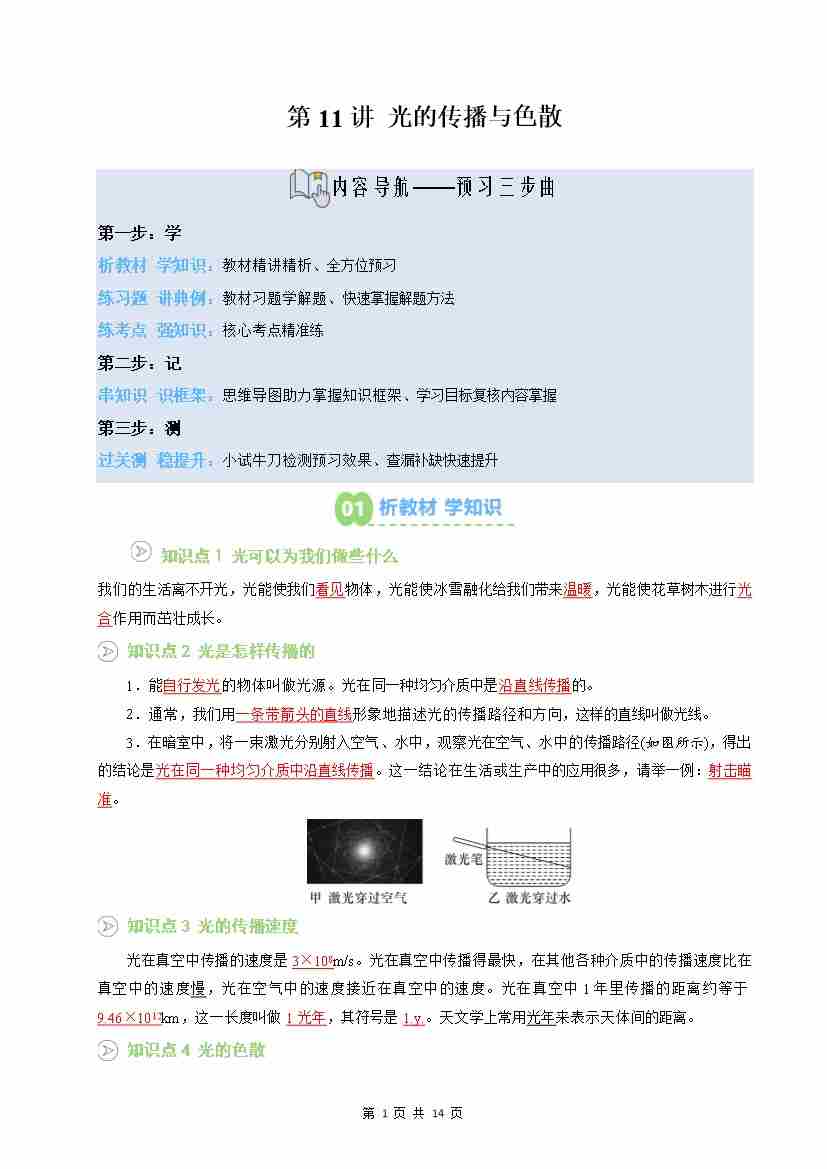 第11讲:光的传播与色散(预习)(原卷版)