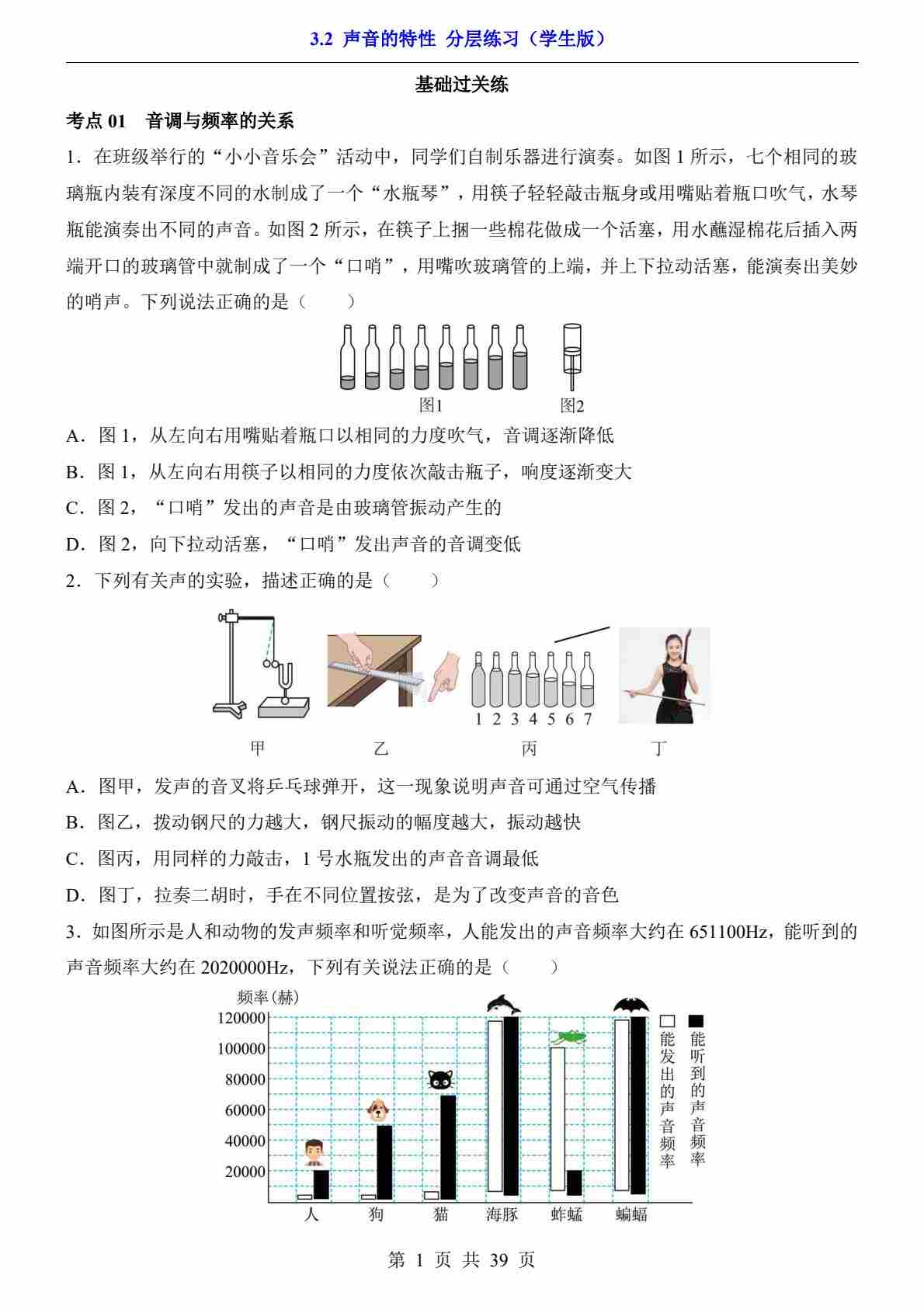 3.2 声音的特性(分层练习)---北师版