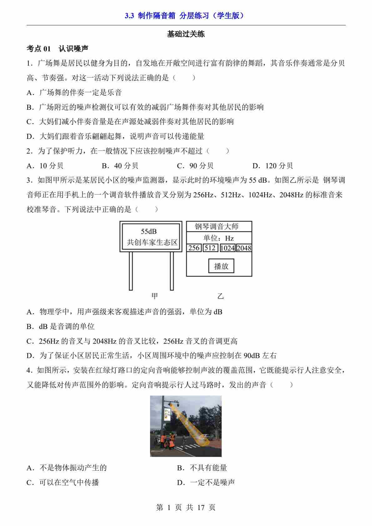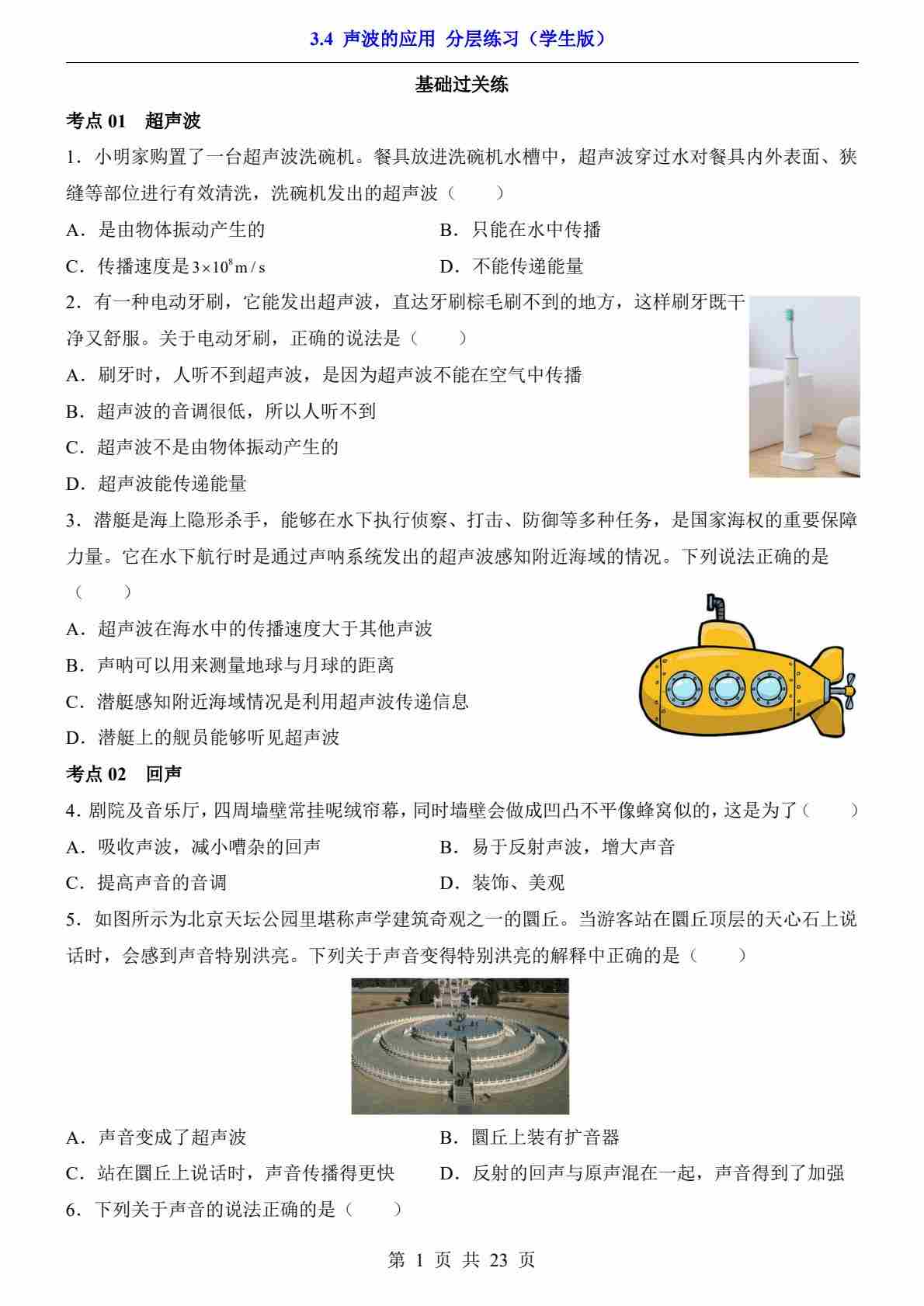 3.4 声波的应用(分层练习)---北师版