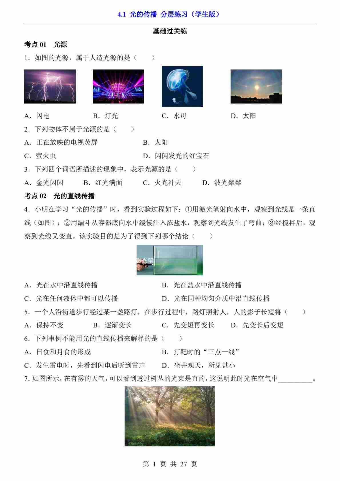 4.1 光的传播(分层练习)---北师版