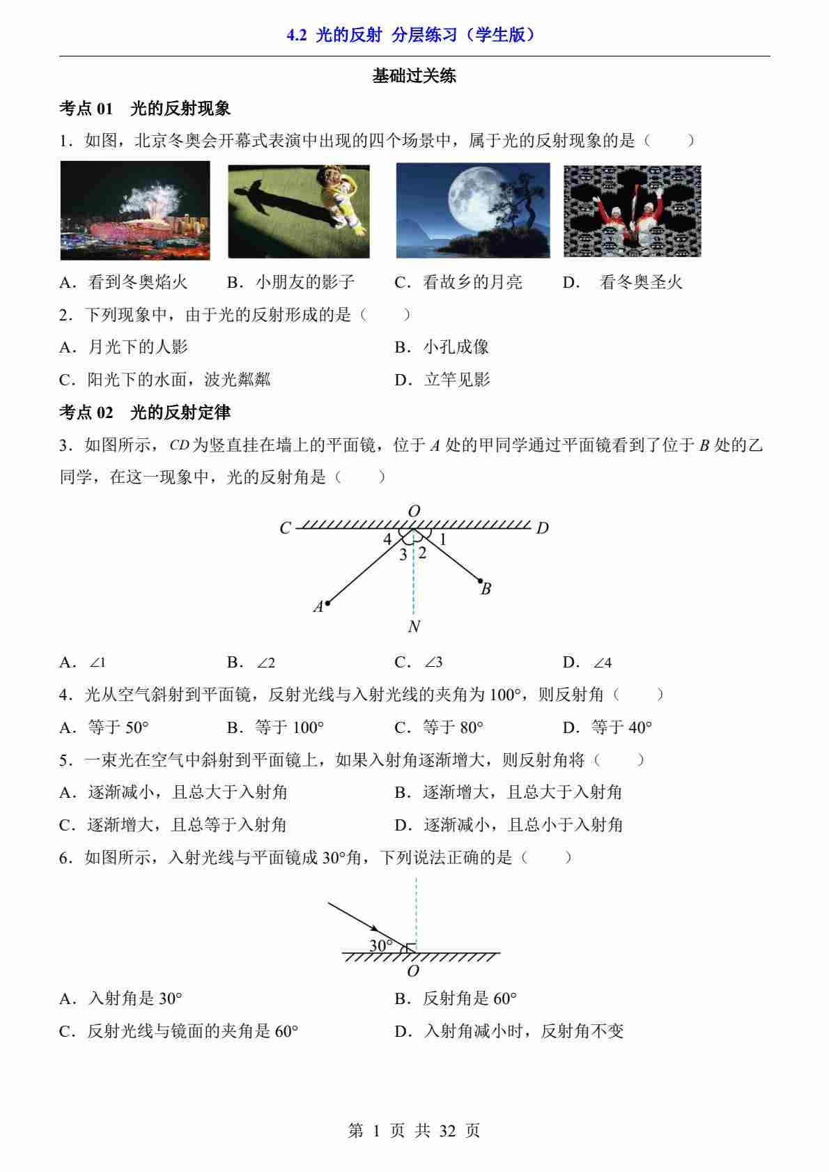 4.2 光的反射(分层练习)---北师版