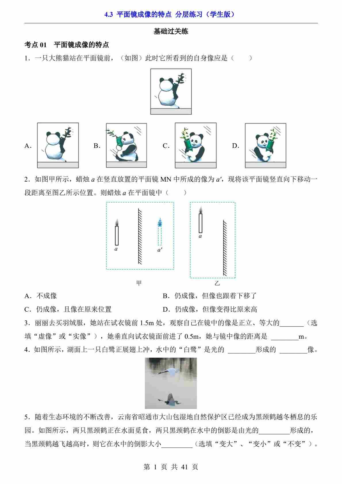 4.3 平面镜成像的特点(分层练习)---北师版