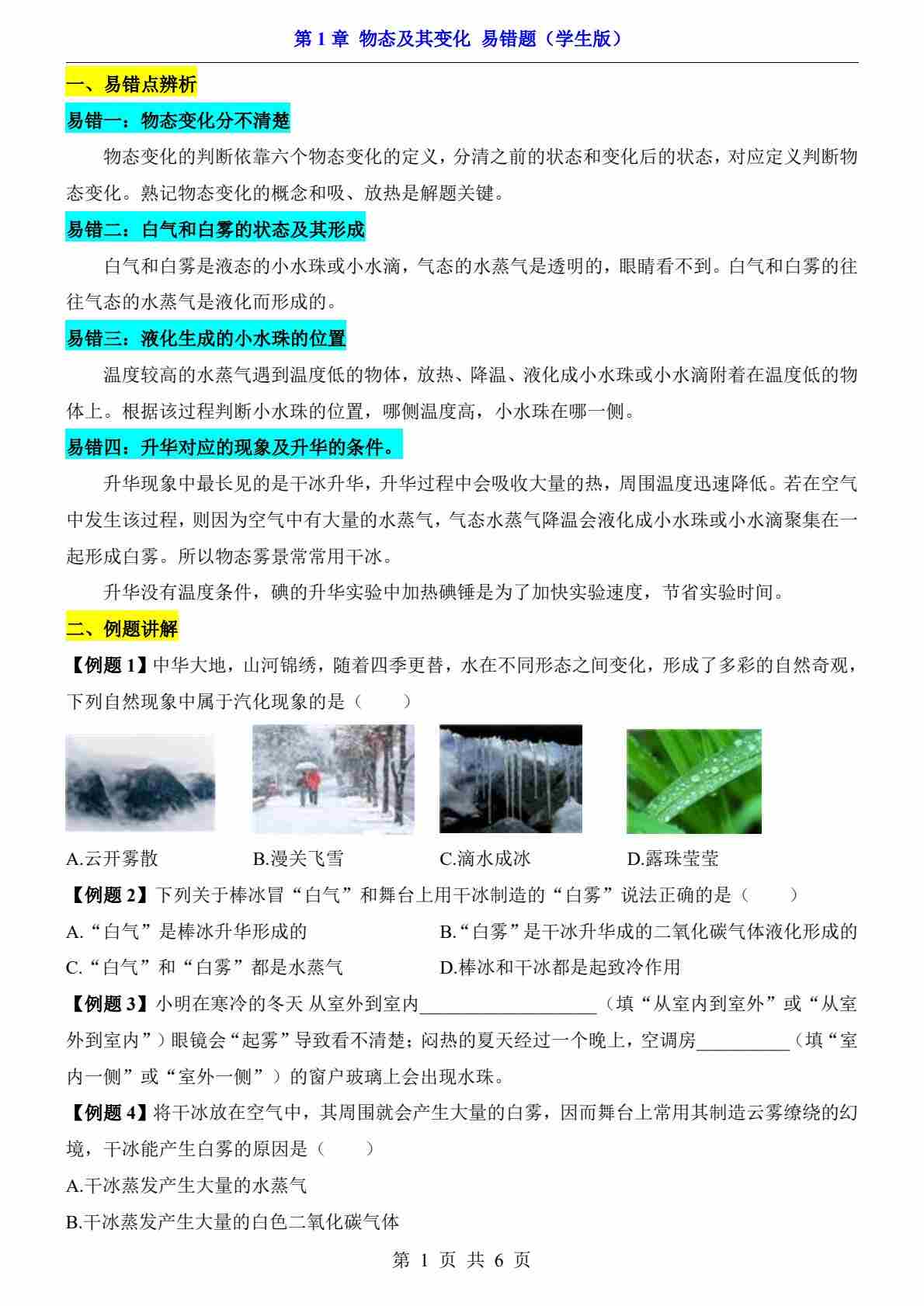 第1章 物态及其变化(易错题)