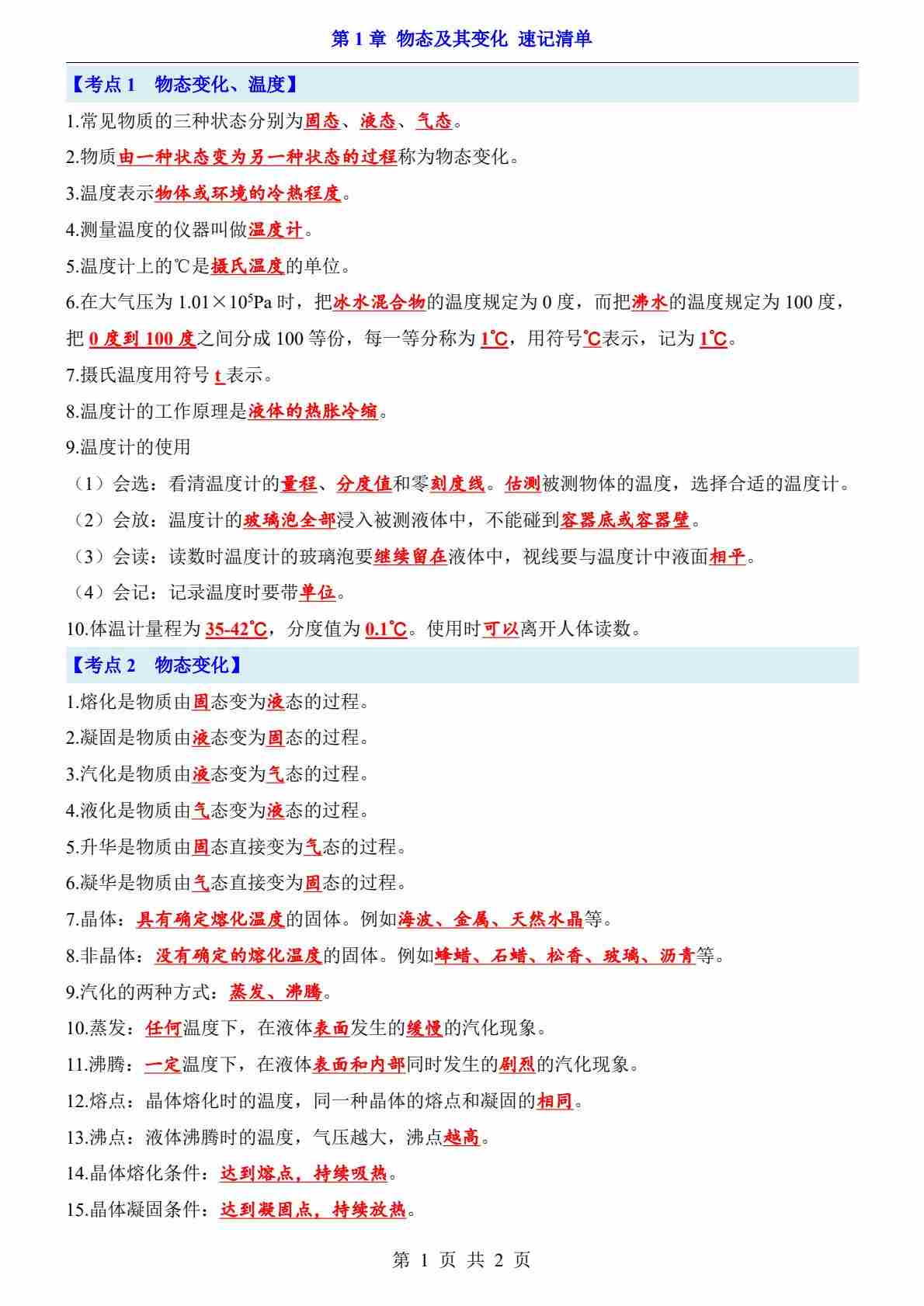 第1章 物态及其变化(知识清单)