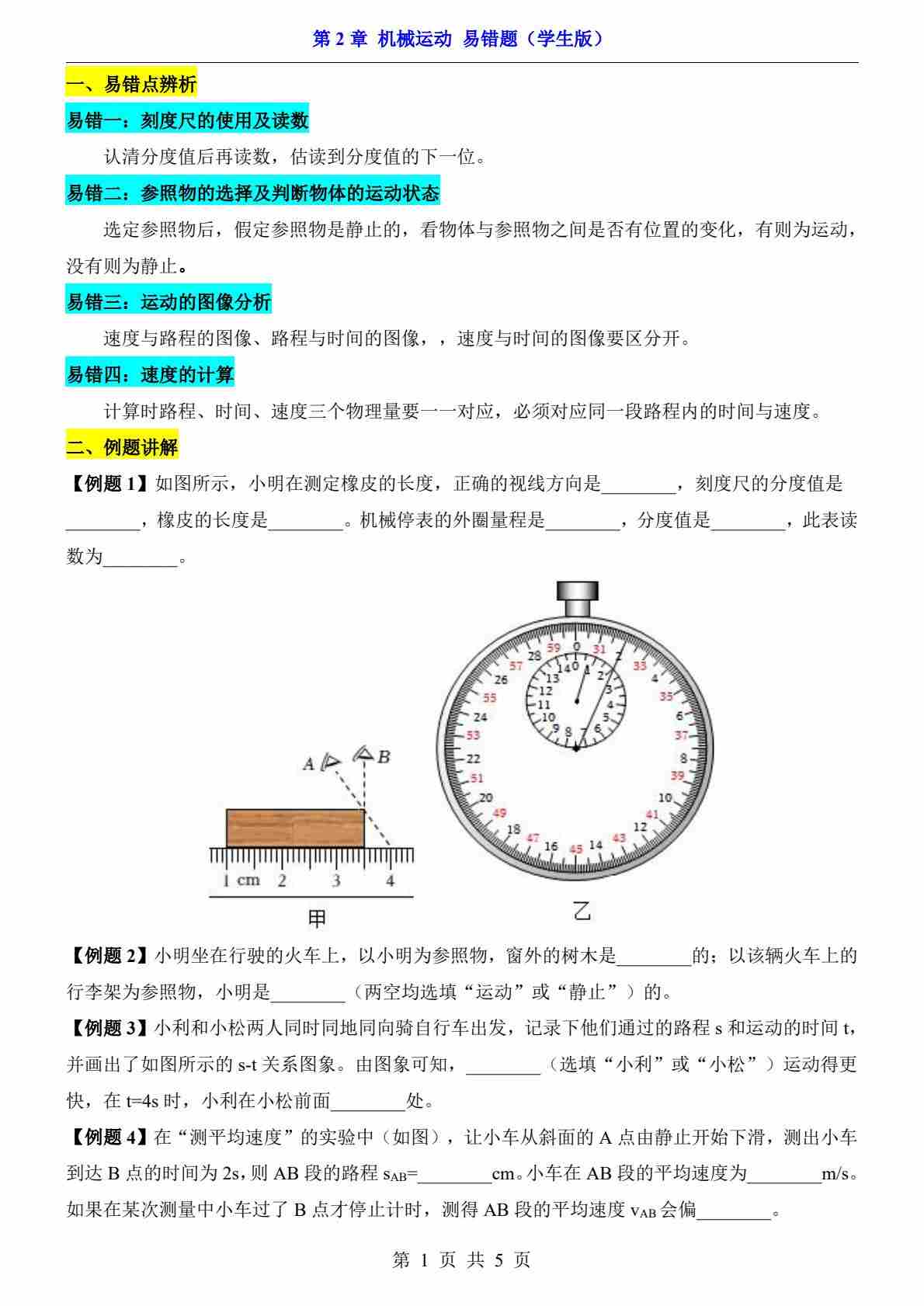 第2章 机械运动(易错题)