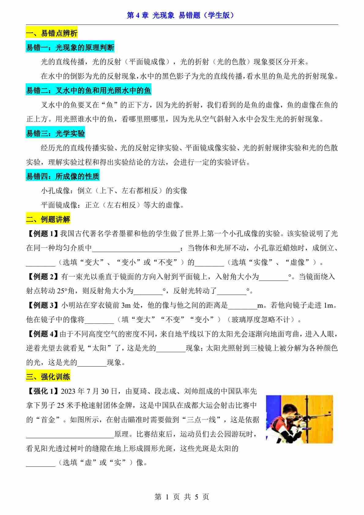 第4章 光现象----(易错题)