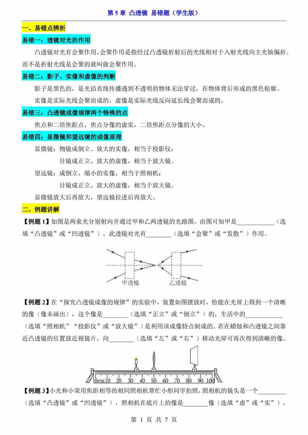 第5章 透镜及其应用----(易错题)