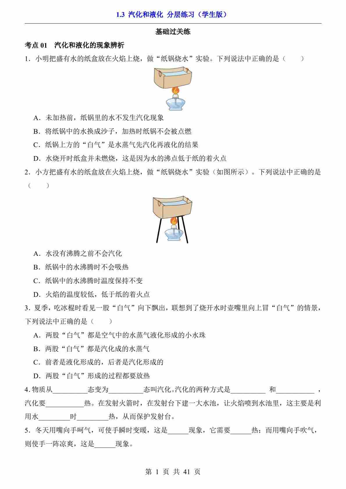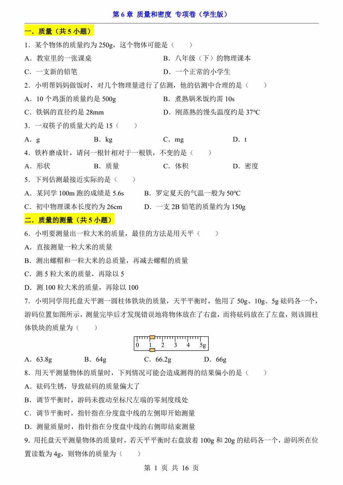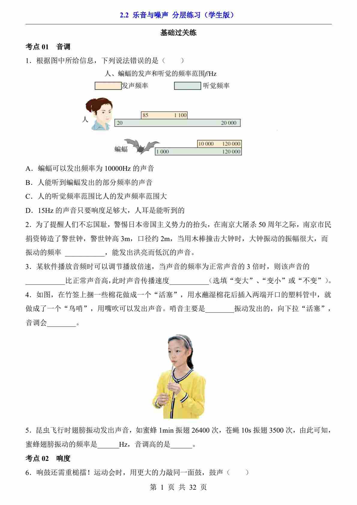 八年级物理第一次月考卷(考试版A4)(京改版)