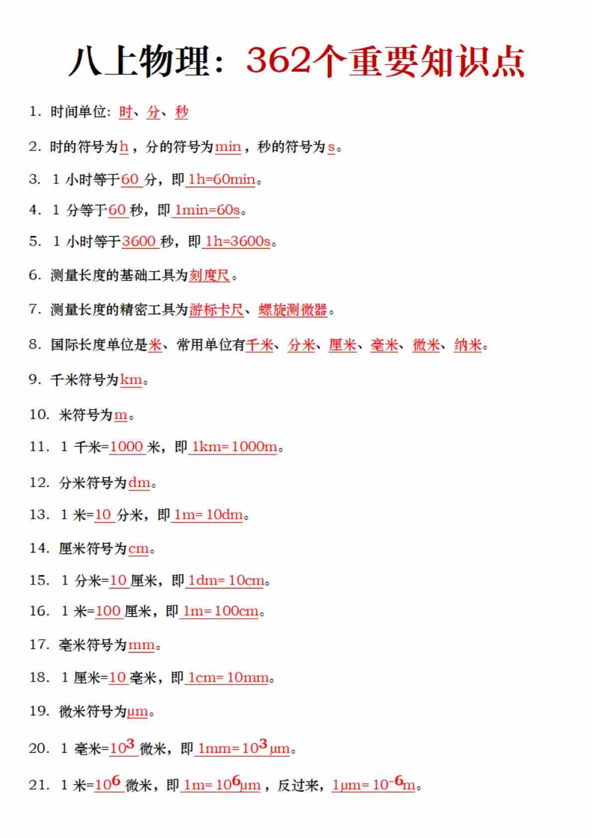 八上物理362个知识点汇总