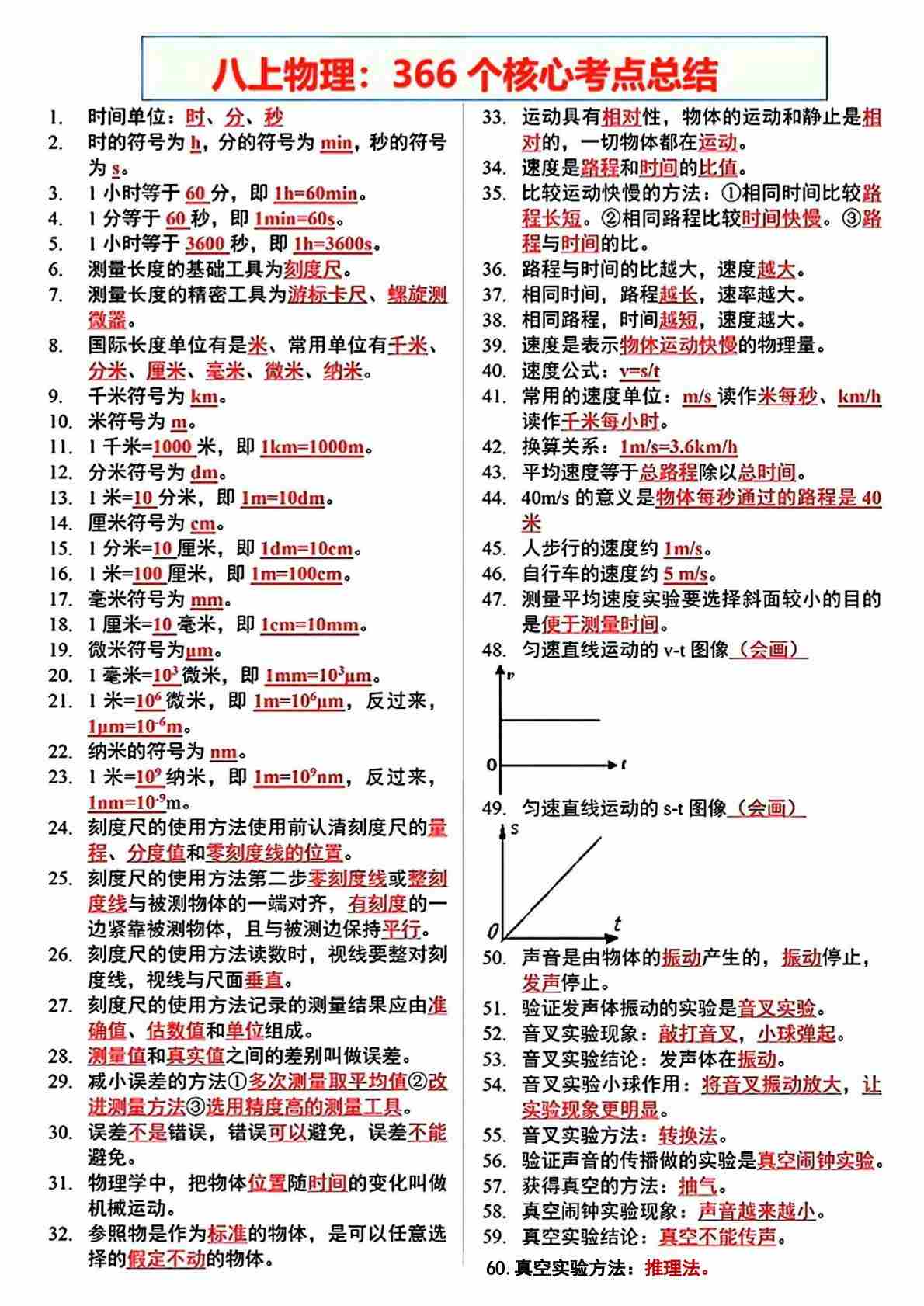 八上物理366个核心考点