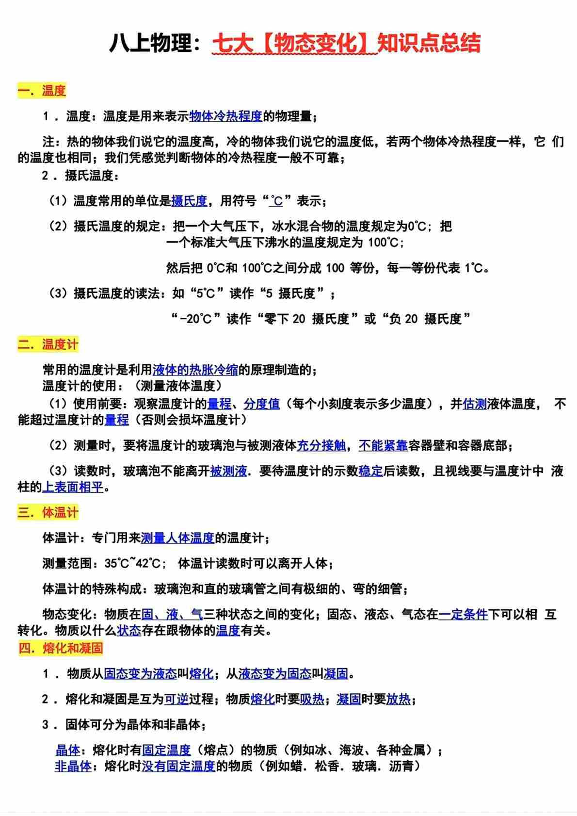 八上物理七大物态变化知识点