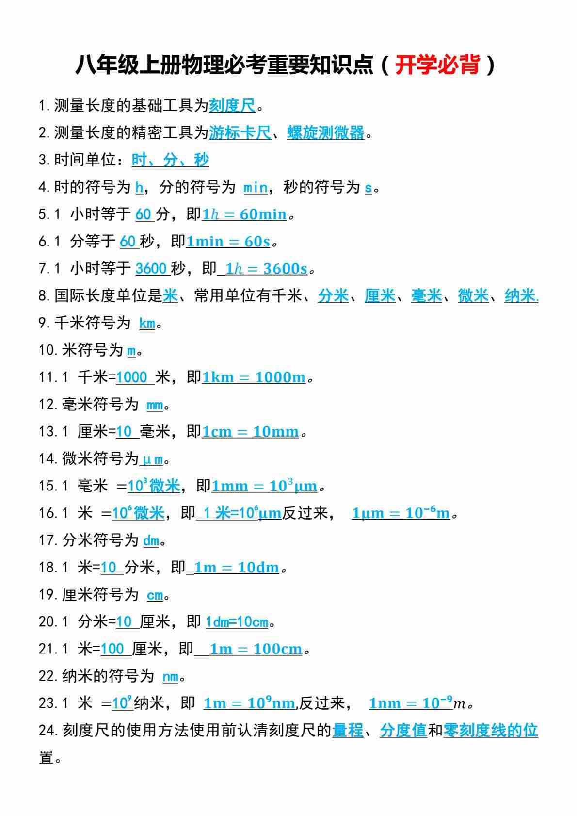八上物理必背知识点早背晚默10天