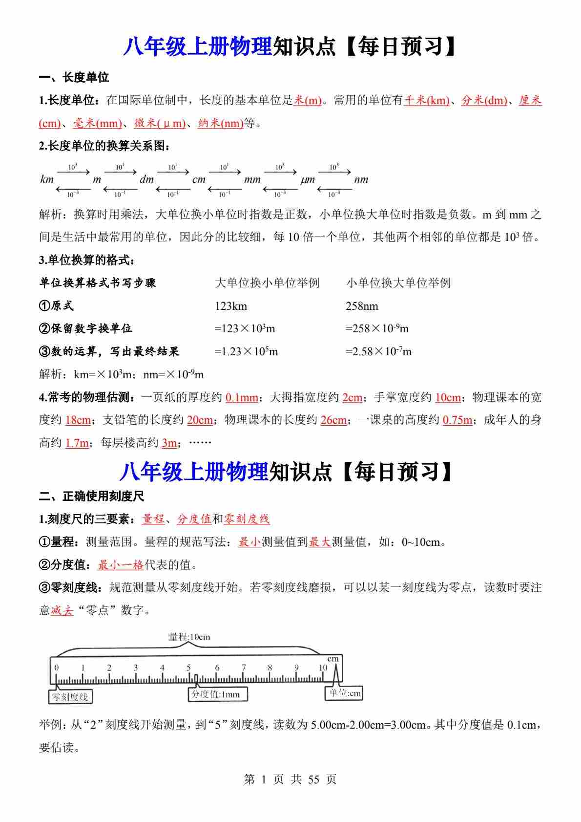 八年级上册物理知识点每日预习