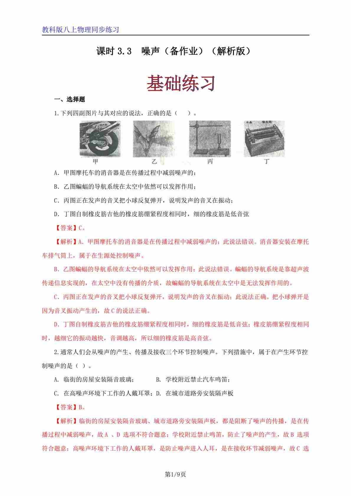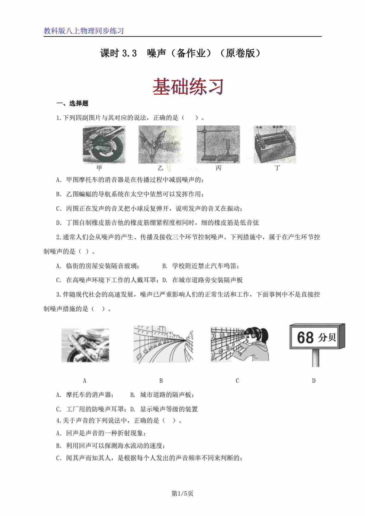 【教科物理】3.3 噪声(同步练习)(原卷版)