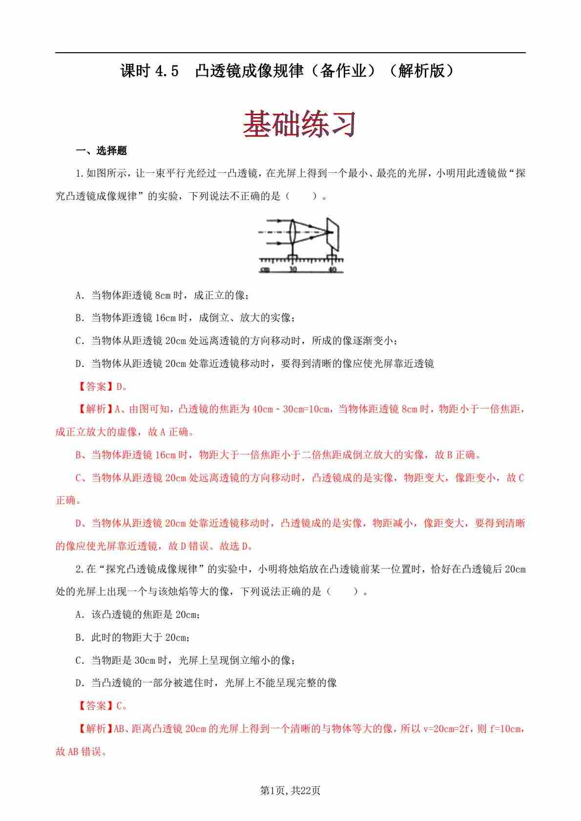 【教科物理】4.5 科学探究-凸透镜成像(同步练习)(解析版)