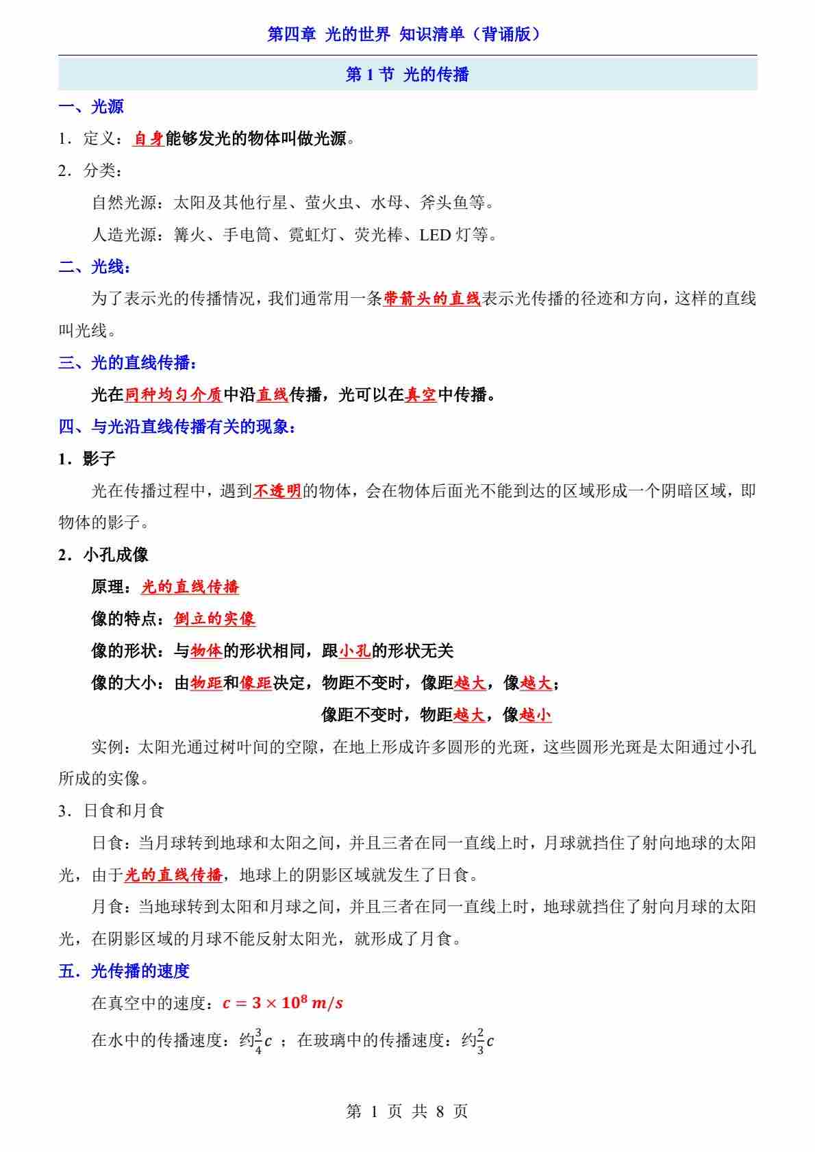第4章 光的世界(知识清单-背诵版)