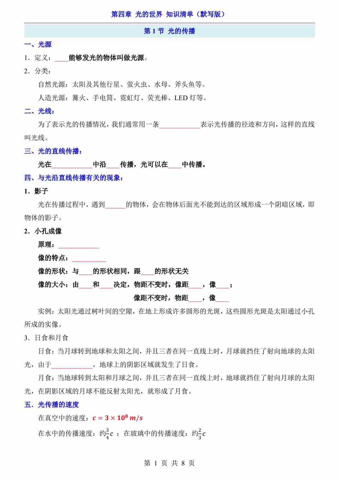 第4章 光的世界(知识清单-默写版)