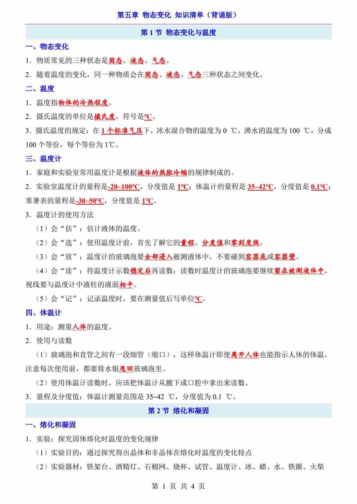 第5章 物态变化(知识清单-背诵版)