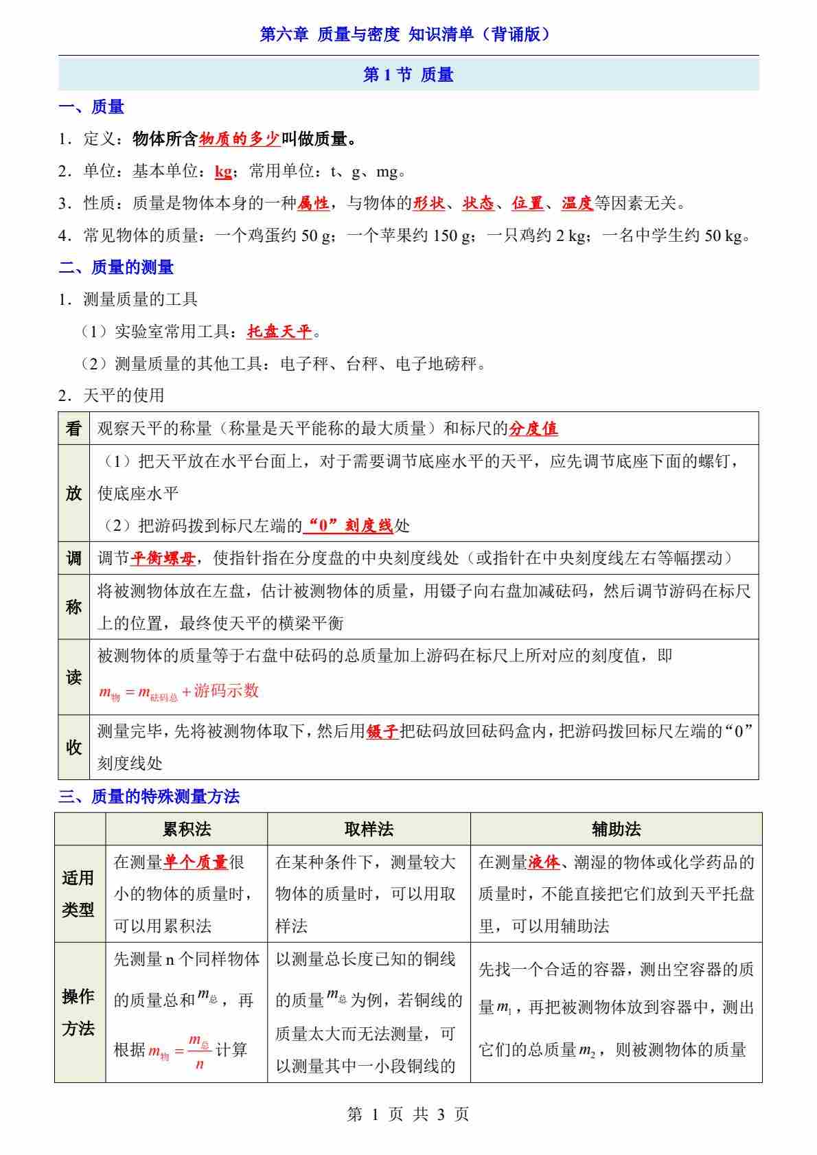 第6章 质量与密度(知识清单-背诵版)