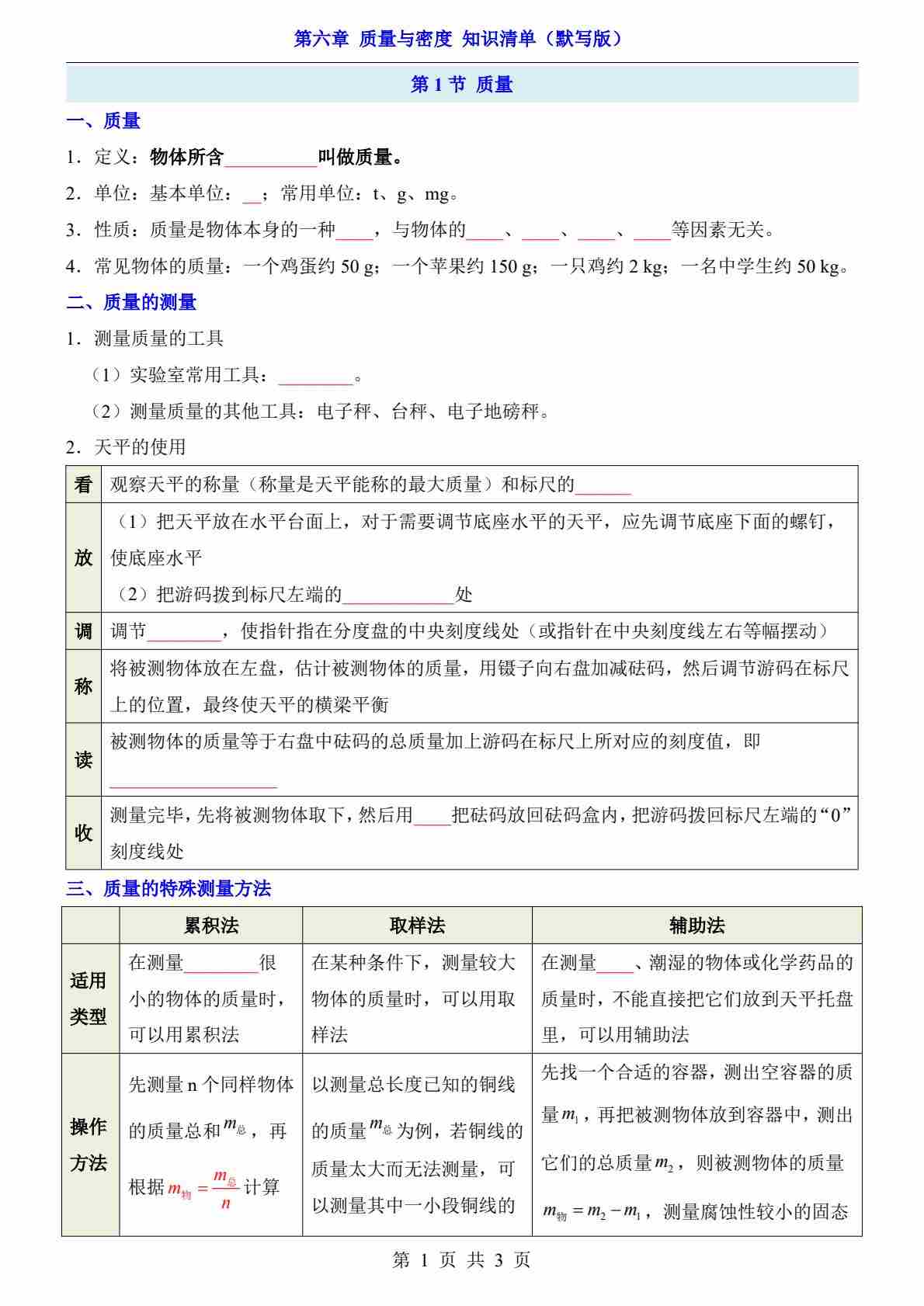 第6章 质量与密度(知识清单-默写版)