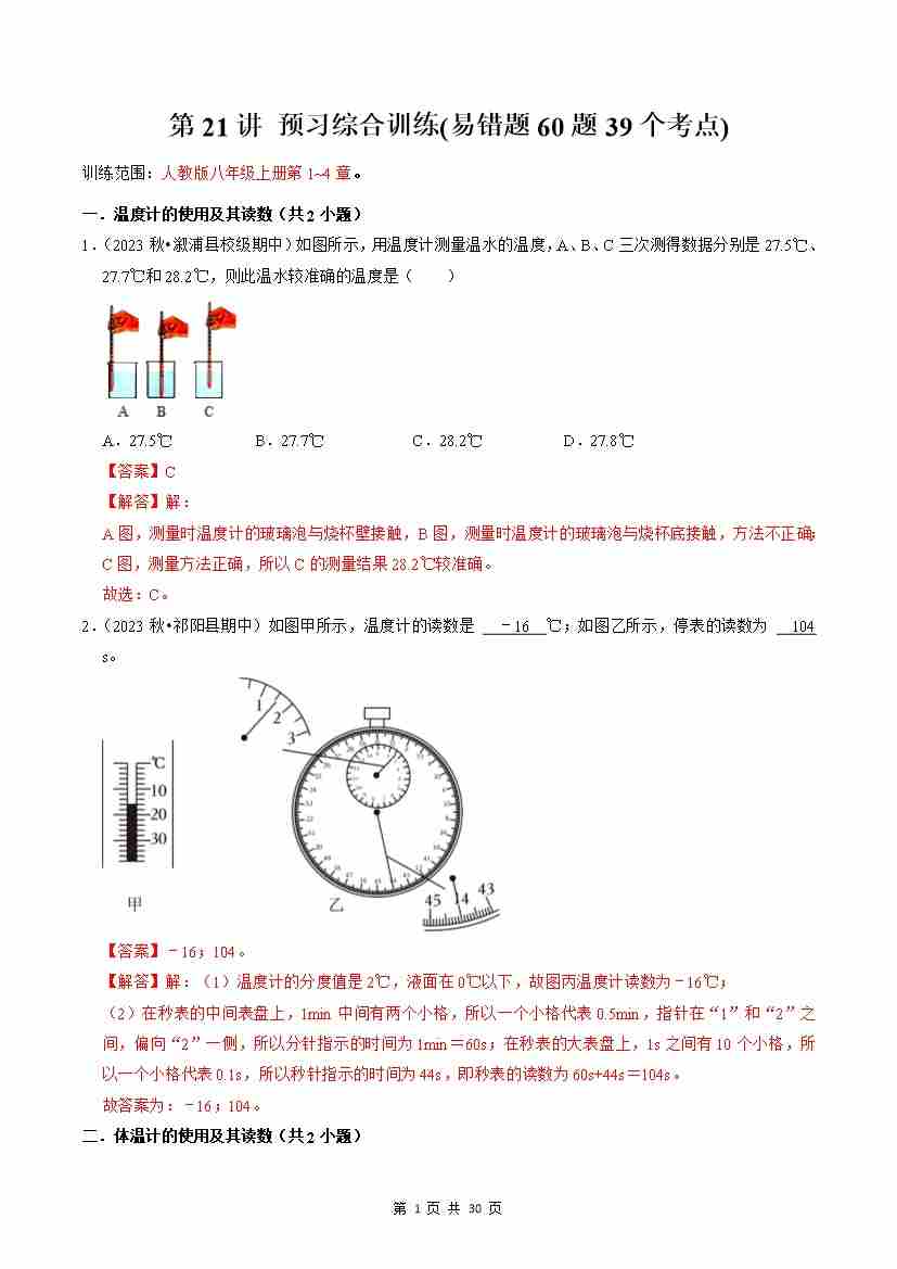 第21讲 预习综合训练(易错题60题39个考点)(解析版)