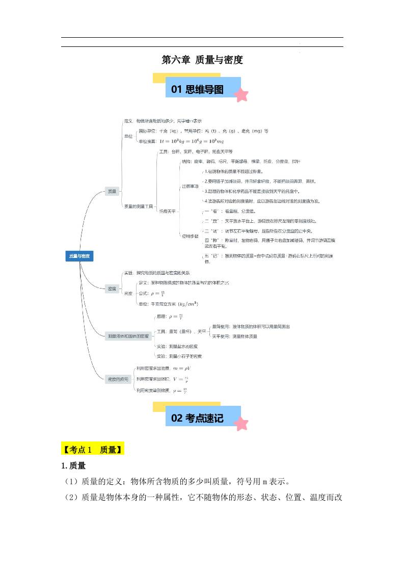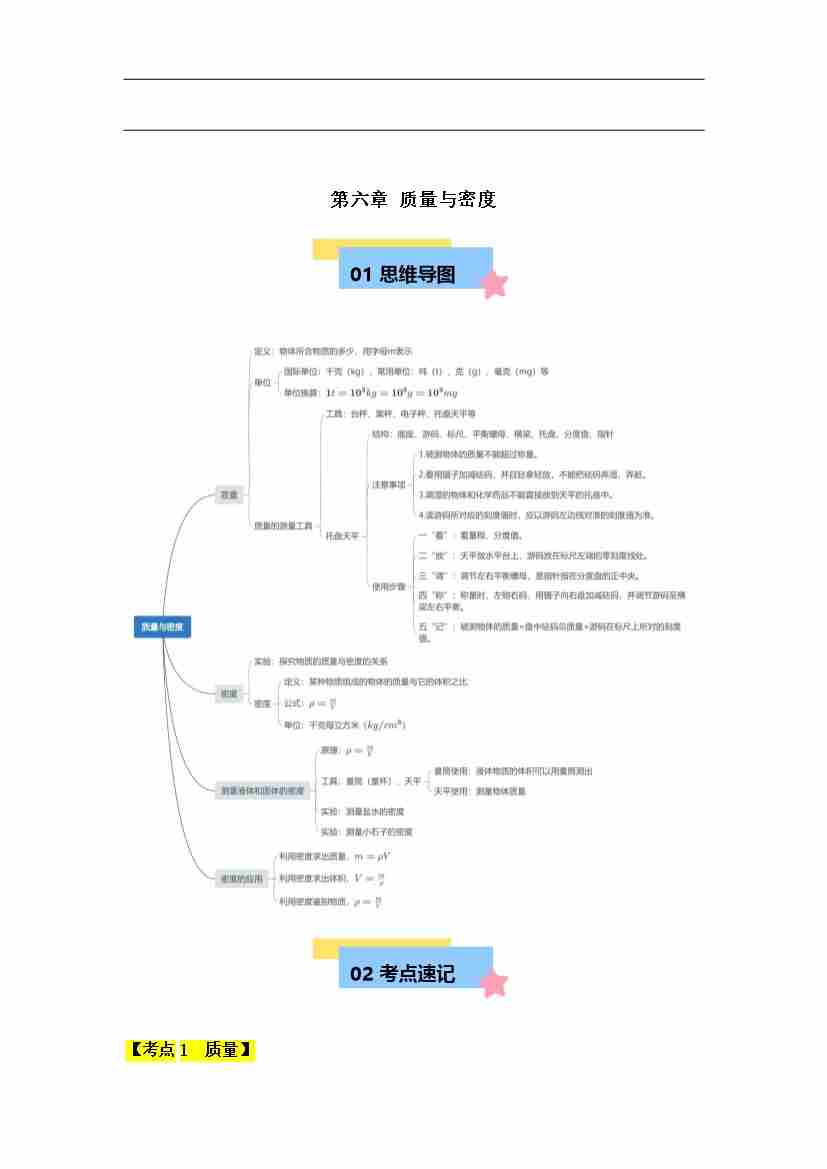 第6章 质量与密度(思维导图)