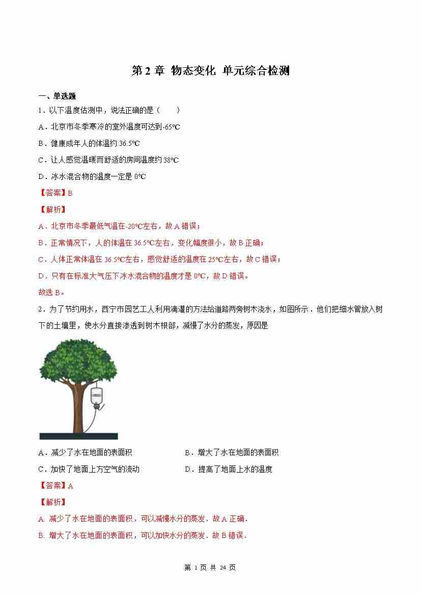 第2章 物态变化 单元综合检测(练习)(解析版)